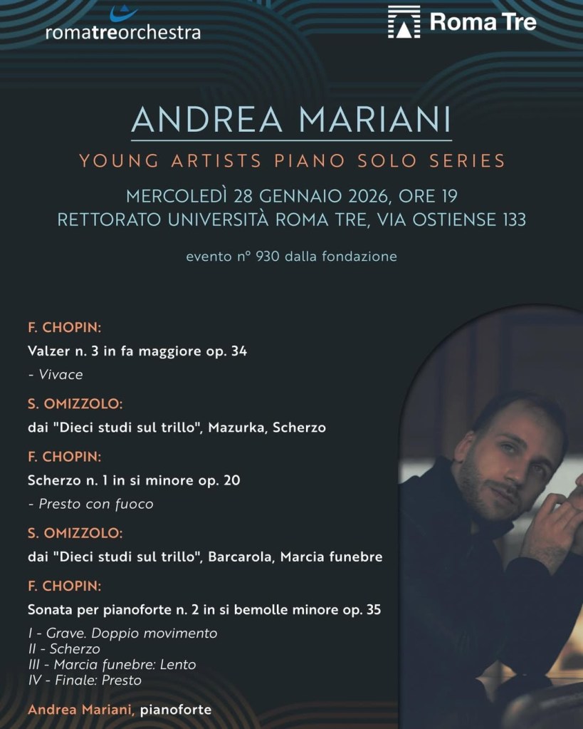 Presentation of the concert season 2026 in Foligno by the artistic director Marco Scolastra with the participation of Peter Paul Kainrath and 2025 Busoni winner Yifan Wu.
