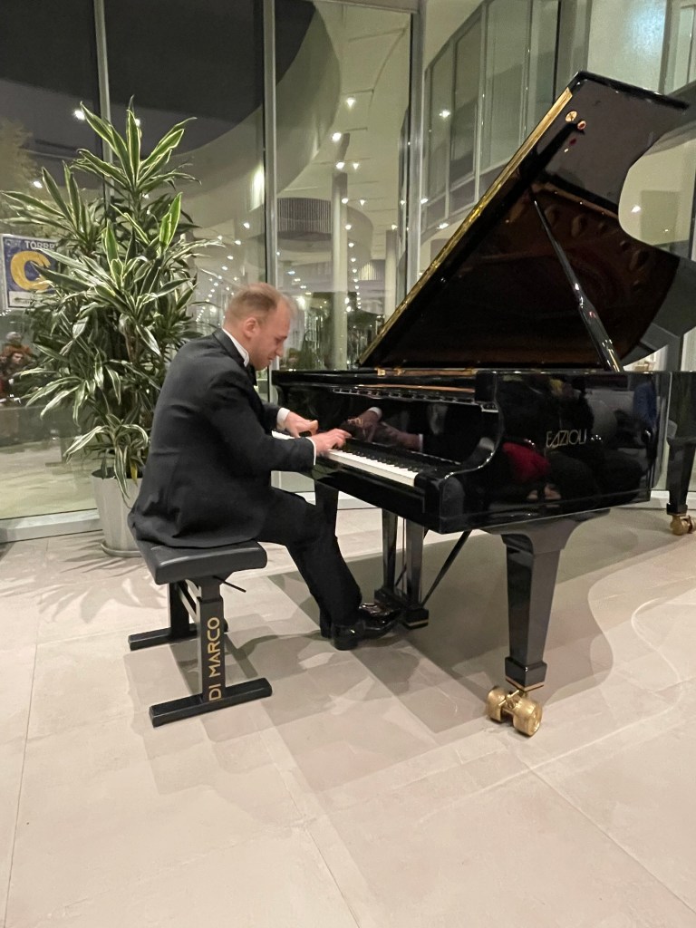 It was obvious from the very first notes of Beethoven’s Sonata op 109 that here was a young man with an impeccable musical pedigree . A young artist who delves deeply into the score paying scrupulous attention to the composer’s very precise indications . But this was only the start of a musical journey of a young artist who listens to himself and produces a range of sounds of great beauty. Whether the sumptuous rich sounds of Liszt or the delicacy of Beethoven this is a young man who loves the piano and is not capable of making ugly or ungrateful sounds at the expense of the composer of which he is a devoted servant .