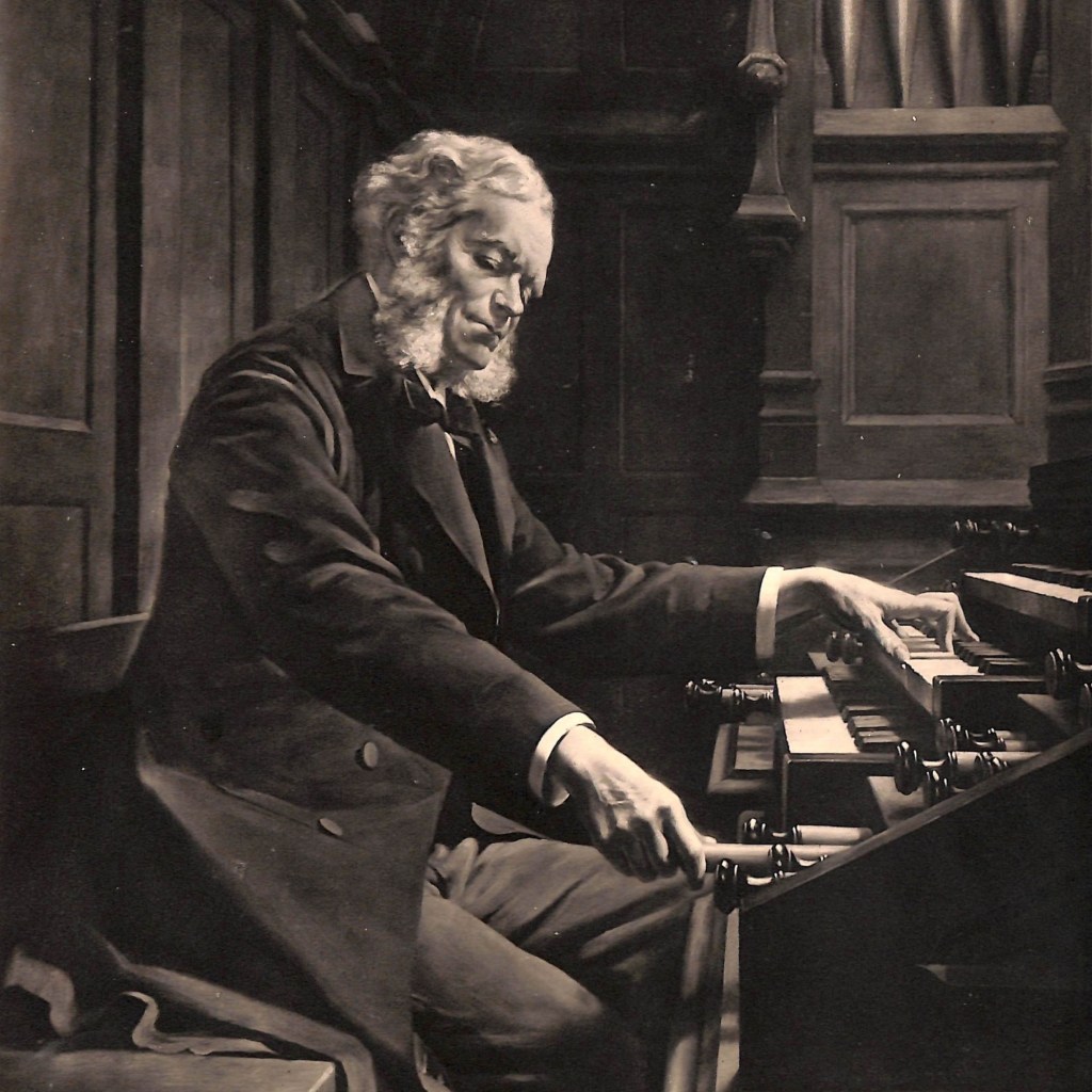 Prélude, Choral et Fugue, FWV 21 was written in 1884 by César Franck with his distinctive use of cyclic form.Franck had huge hands ,wide like the span of emotions he conveys,capable of spanning the interval of a 12th on the keyboard.This allowed him unusual flexibility in voice-leading between internal parts in fugal composition, and in the wide chords and stretches featured in much of his keyboard music.Of the famous Violin Sonata’s writing it has been said: “Franck, blissfully apt to forget that not every musician’s hands were as enormous as his own, littered the piano part (the last movement in particular) with major-tenth chords… most pianistic mortals ever since have been obliged to spread them in order to play them at all.”The key to his music may be found in his personality. His friends record that he was “a man of utmost humility, simplicity, reverence and industry.” Louis Vierne a pupil and later organist titulaire of Notre-Dame, wrote in his memoirs that Franck showed a “constant concern for the dignity of his art, for the nobility of his mission, and for the fervent sincerity of his sermon in sound… Joyous or melancholy, solemn or mystic, powerful or ethereal: Franck was all those at Sainte-Clotilde.”In his search to master new organ-playing techniques he was both challenged and stimulated by his third and last change in organ posts. On 22 January 1858, he became organist and maître de chapelle at the newly consecrated Sainte Clotilde (from 1896 the Basilique-Sainte-Clotilde), where he remained until his death. Eleven months later, the parish installed a new three-manual Cavaillé-Coll instrument,whereupon he was made titulaire.The impact of this organ on Franck’s performance and composition cannot be overestimated; together with his early pianistic experience it shaped his music-making for the remainder of his life.
