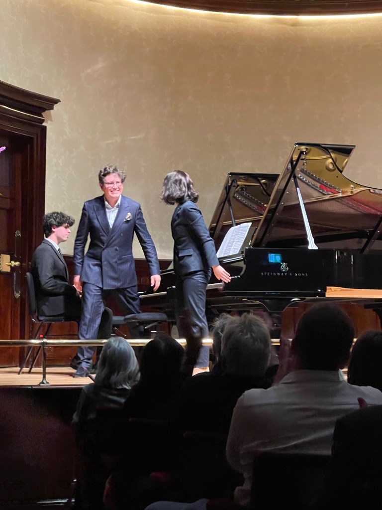 Beethoven’s ‘Hammerklavier’ Sonata followed .Sean only 20 years old chose to pair the two masterpieces because Beethoven admired Handel deeply and thought him to be the greatest composer, even above J.S. Bach. The grand canvas of the Sonata invited large strokes from the pianist and, paired with the vibrant powers of the piano, this performance will resonate in our minds and hearts for a while still. Solid in his grasp of the material, Sean was clearly constructing a narrative, something he is interested in discovering in movies, as he mentioned later in the interview. Moments of serenity and beauty were swept away with youthful enthusiasm. Sean admitted to have been rather inspired by the instrument and its capabilities and made the most of this opportunity to play one of the top pianos at this famous venue. The fireworks of the dramatically contrasting Scherzo gave way to the grey skies of the Adagio Sostenuto with a rare ray of sunshine interrupting the gloomy chordal texture. The middle section of the movement revealed the most sincere, yet emotional, rendition from Sean, singing the theme from his heart which soared with desperate sorrow. The last movement with its challenging fugue revealed Sean’s grasp of the structure and role of every note. Wildly contrasting in both tempo changes and dynamics, this movement had a spine-chilling drive to the very end, impressively articulated and performed with full commitment, though seemingly rather at ease. A very impressive young man, whose passion for sharing his stories through music will take him far.