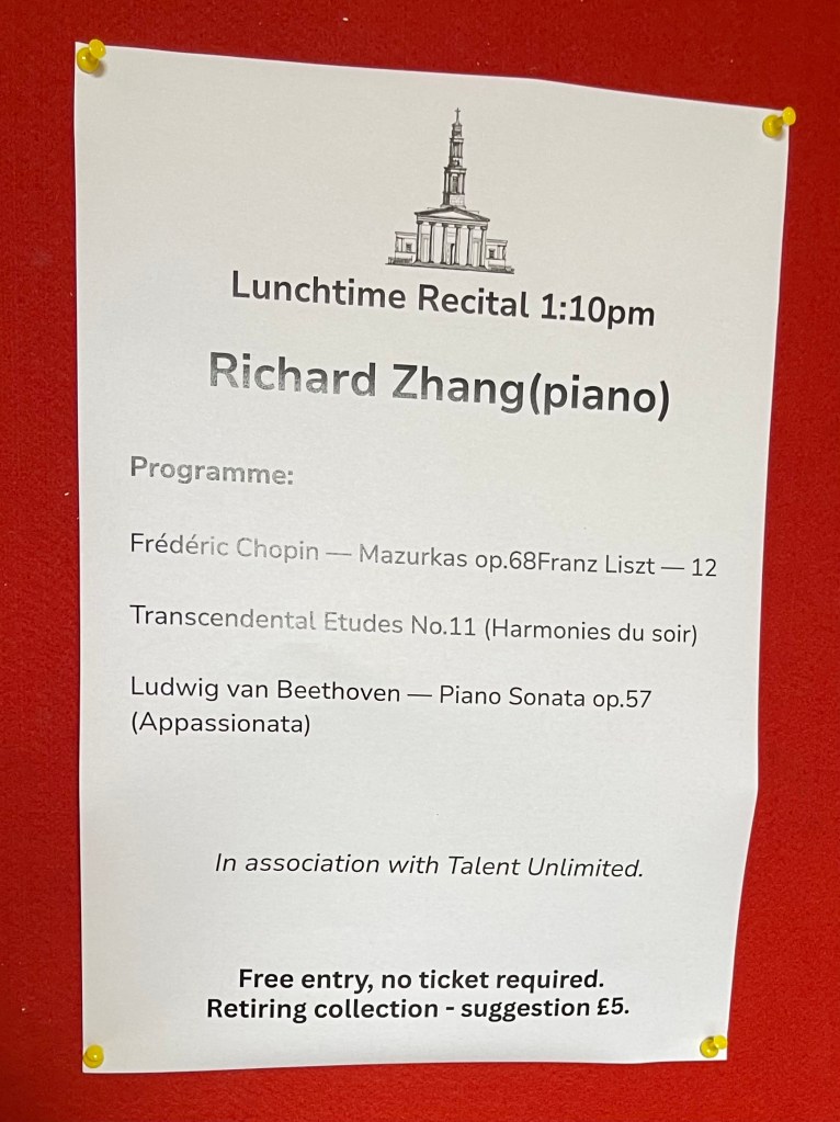 I was told by Deniz Gelenbe about a remarkable young pianist she had heard recently in the Beethoven competition that she was judging at the Royal Academy. A name new to us and I was glad to hear him for myself just a month ago thanks to Canan Maxton and her Talent unlimited . I had spoken to Herman on that occasion with great enthusiasm and I was struck by his disarming humility and genuine surprise at my comments. We have been in touch since that first encounter and on Thursday he sent me a message saying he had been asked, by the indomitable Canan Maxton, if he could substitute an indisposed pianist the next day. I was in Italy at that time but have since had a chance to listen to the concert that was streamed from St James’s Piccadilly. A chance to hear him play Beethoven at last and to confirm all that I had heard about him from Prof.Deniz Gelenbe.