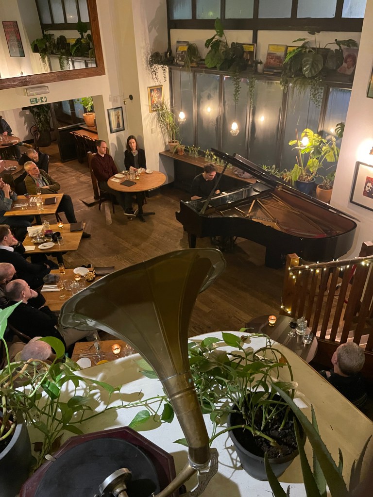 Martin looking at Mariam with a twinkle in his eye as they inspired each other to delve ever deeper into the music of Bach, Schubert and Mozart. Even a problem with the pedal was soon sorted by the two gentlemen on stage (Martin and the page turner) whilst Mariam ordered her score.