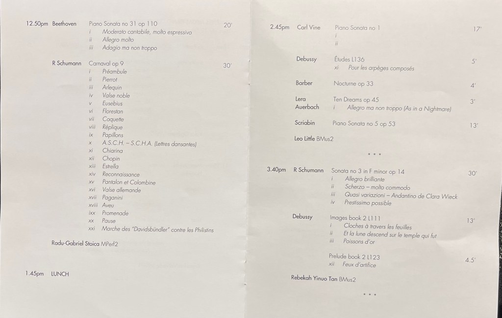 Mariam at the top for Bach and Martin at the top for Schubert and after such democratic beauty they each had their own instrument for Mozart.