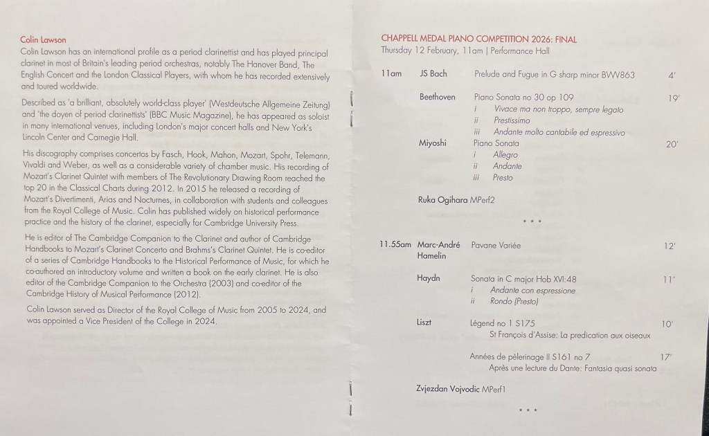 Richard has given various solo performances in China and Europe, taking part in a number of concerts in the Menuhin Hall and other venues since joining the school. In December 2017 he was the soloist for a performance of Finzi’s Eclogue with the school’s Junior Orchestra, a mature performance much praised for its meditative qualities. In February 2018 he performed Liszt Transcendental Studies in Amsterdam to considerable acclaim.
