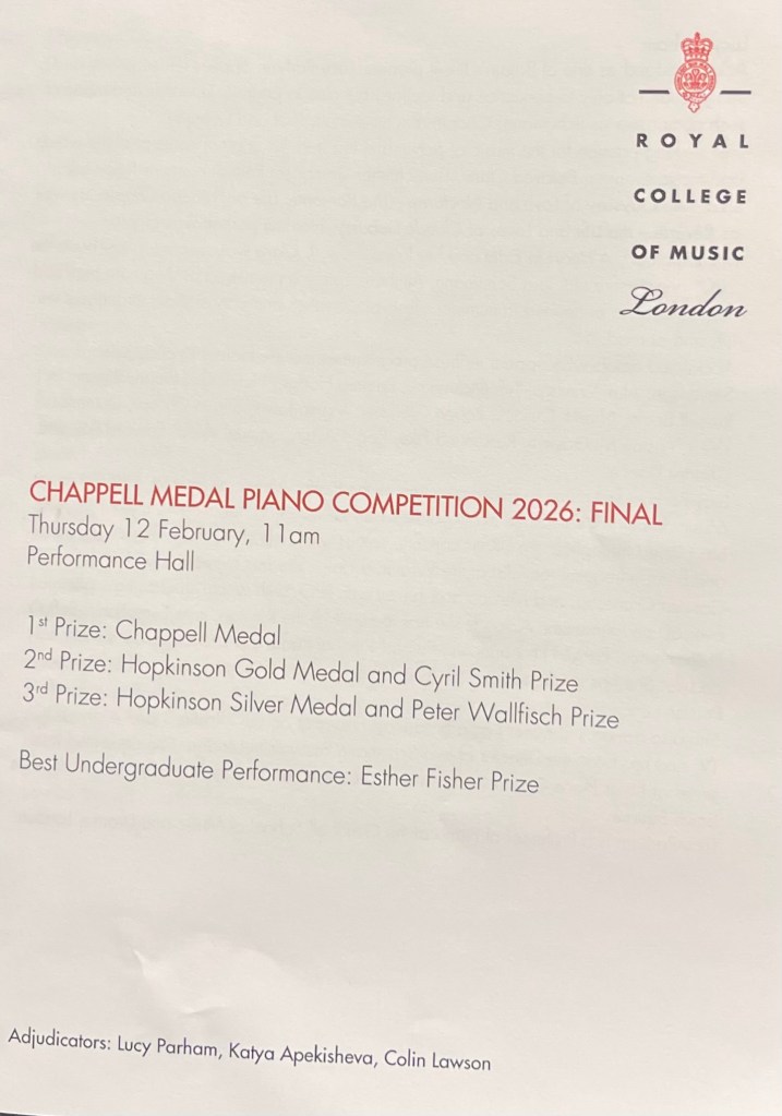 He has been awarded a scholarship to study at the Guildhall School of Music and Drama and in addition to this generous bursary, he has been selected by the Keyboard Trust to receive the 2024 Dr. Weir Legacy Award to help support his further studies.