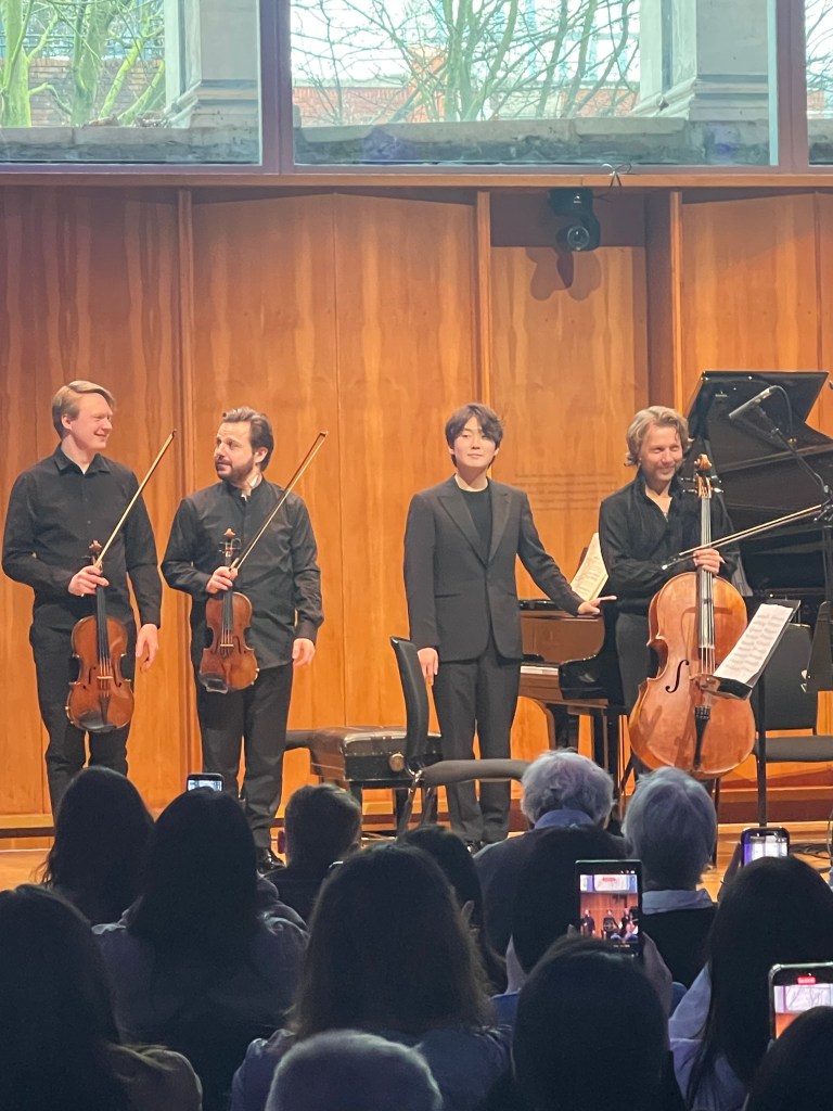 It was the same chameleonic presence of Cho with the four principal string players in Brahms G minor Quartet. He was able to amalgamate the sound of the piano so it became part of the strings with no thought of hammers striking strings.A sound that miraculously just filled the stage, the hall and hopefully microphones with sumptuous sounds. David Cohen, who I had noticed yesterday in Stravinsky, playing with such joy as he looked us in the eye to make sure we were enjoying it just as much as he. This was chamber music to cherish as this group of players could unite as one stimulating each other to delve ever deeper into the sublime secrets hidden within the all too inadequate black and white indications on the page.