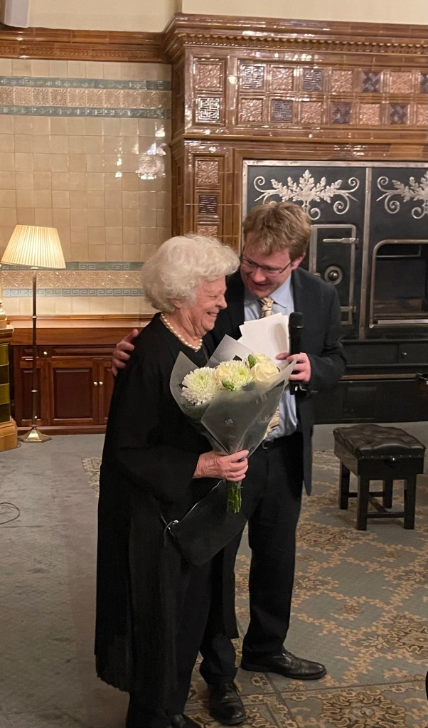 Mary had written to me in her own inimitable way and on arriving our beloved Mary handed me a glass of red wine and the best seat in the house! What a lady!