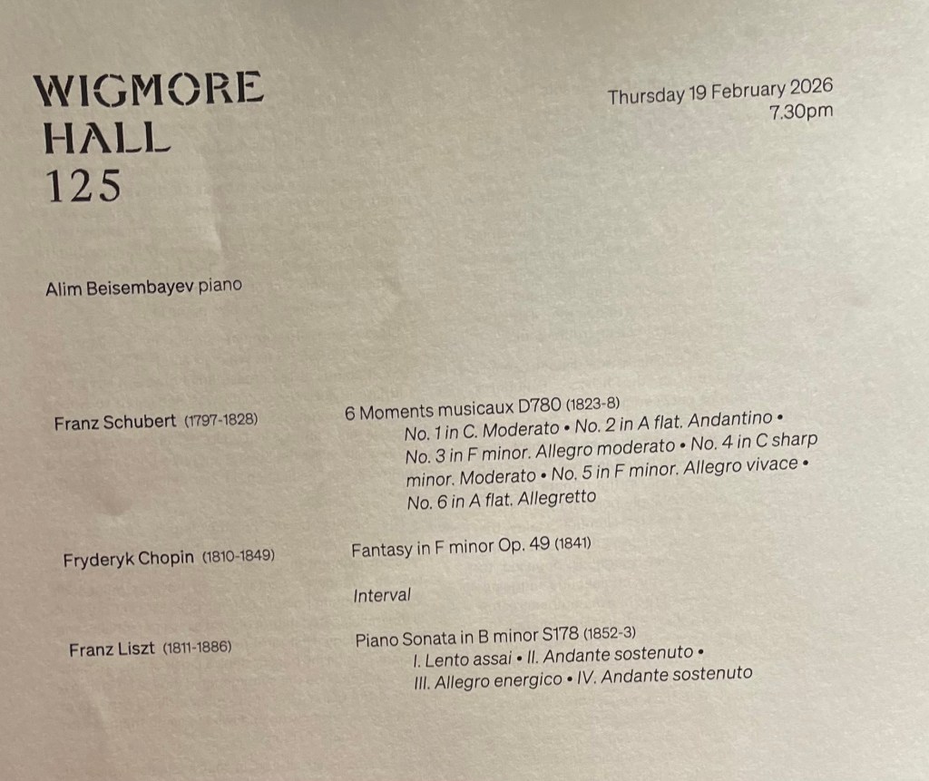 Alim Beisembayev at the Wigmore Hall with a programme of just three great works that announced his credentials even before he played a note.