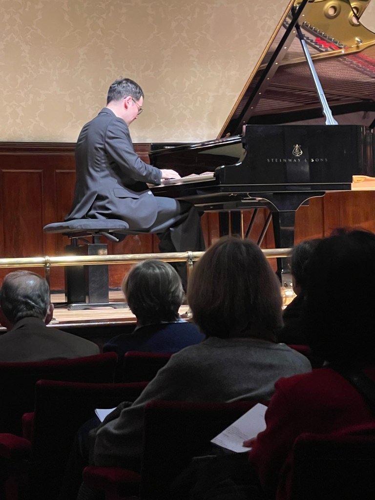 Chopin’s Fantaisie op 49 is one of Chopin’s most loved works but it is rarely given the pedestal that it truly deserves. Alim restored it to its rightful place with a performance of scrupulous attention to Chopin’s markings and in particular his pedalling. Not allowing himself to be swayed by tradition but looking deeply into the score and revealing the noble strength that is in the notes themselves, without any need to add any idiosyncratic niceties that have been handed down through a so-called Chopin tradition. There is a strength and aristocratic beauty to this work that Alim exulted with masterly musicianship and fearless technical aplomb. From the very first notes marked staccato but also slurred with a long pedal at the end of the phrase that links these questioning phrases to their beautiful delicate answer. Staccato yes but what instrument is playing staccato? Maybe a cello with some vibrato ,Alim thought so too, but in such whispered tones that there was an ambiguity of great beauty. He brought a calming pastoral calm to the march like theme coming to rest on pianissimo chords with the opening heart beat motif throbbing gently in its midst. A quasi improvised passage of great freedom led to a fortissimo scale that announced the passionate intensity of agitation with a soaring melodic outpouring. The bass always acting as an anchor adding great strength to Alim’s playing as he fearlessly allowed the music to stream through his very being. Three pianissimo octaves of G flat brought calm and serenity to the central ‘Lento sostenuto’ chorale in B major. Alim managing the sudden interruption with mastery as the Fantaise is re -ignited with ever more intensity, as Chopin makes clear in the score. Coming to a momentary halt with a sudden unexpected ‘Adagio sostenuto’ which Alim played with timeless wonder, where the rests between the gasping delicate phrases were filled with poignant meaning . It led to a beautiful wave of sounds where Chopin asks for a single pedal over nine bars that Alim incorporated into a poetic fantasy world, only to be interrupted by the two final magisterial chords.