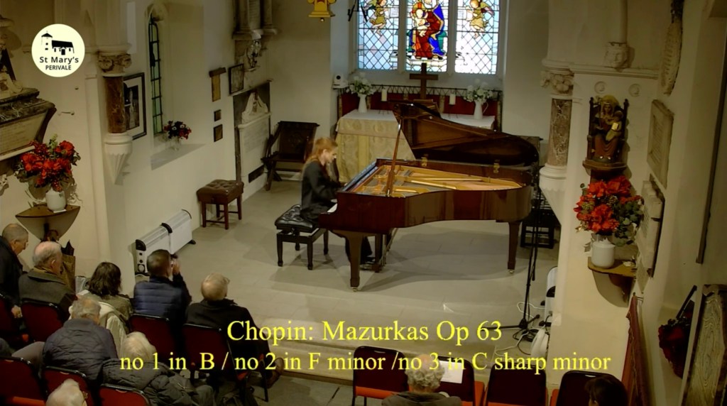 It was Schumann who described Chopin’s Mazurkas as ‘canons covered in flowers’ and that I had quoted earlier to describe Milda’s artistry. The last published Mazurkas in Chopin’s lifetime and as Milda said in her introduction, in each of these three Mazurkas op 63 there is an overwhelming abundance of invention. Was this a composer who could see death all around him and needed to give space to the wonders that were still in his soul. Certainly Milda believed this to be true as she played with an improvised freedom of radiance and glowing beauty. In this first Mazurka there was the same feeling of dance of the ‘ecossaise’ with a ‘joie de vivre’ of infectious vitality.The F minor Mazurka was of heartrending beauty of beseeching radiance which Milda imbued with a kaleidoscopic palette of emotions of refined sounds.Milda brought a beguiling insinuation to the C sharp minor Mazurka so similar to the poignant nostalgia of Chopin’s later waltzes.