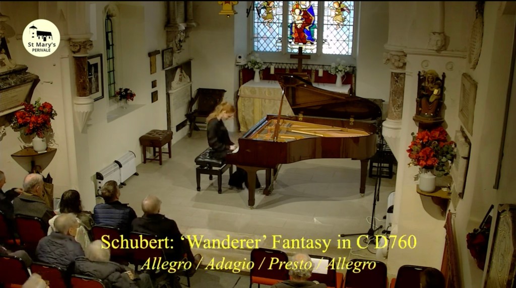 It was the Fantasy of Schubert in the ‘Wanderer’ that matched so perfectly Milda’s temperament and fearless search for the meaning behind the notes. Schubert always with a ‘song in his heart’, even in the most outrageously virtuosistic passages of a work that was to lead the way and create a new form for future composers. It was so admired by Liszt that he even transcribed a version for piano and orchestra and Schubert’s ‘leitmotif’ in the Wanderer, via Liszt, was to inspire his son in law Richard Wagner. Milda played with brilliance and nobility, her natural technical mastery at the service of the music with burning intensity, delicacy and radiant beauty. There was a deep brooding as the intensity abated and the ‘Wanderer’ appeared on the scene. Milda brought a depth of sound to this song where every note of the chords spoke so eloquently of profound aristocratic emotions. Allowing the variations to unfold like characters appearing on stage in a quasi operatic panorama of human emotions.There was the radiant beauty of a true bel canto answered by the poignant supplication of the tenor. Unfolding with the washes of sound of a perfectly shaped jeux perlé as drama suddenly took centre stage. A remarkable technical control as Milda lived every moment with vibrant conviction. Bursting into the dynamic drive of the ‘Scherzo’, a lilting unstoppable Schubertian outpouring with streams of notes, mere frissons of exhilarating embellishments. The ‘Fugato’ entered with a driving mastery and nobility. A ‘tour de force’ of transcendental piano playing but such was her mastery she could even snatch a breath ,as Arrau was wont to do, before the final few bars of a continuous crescendo to the conclusion of yet another story told by a master storyteller.