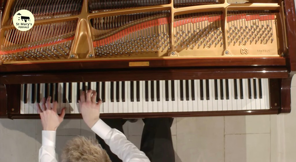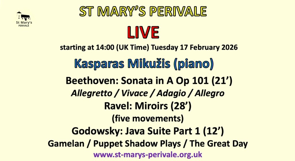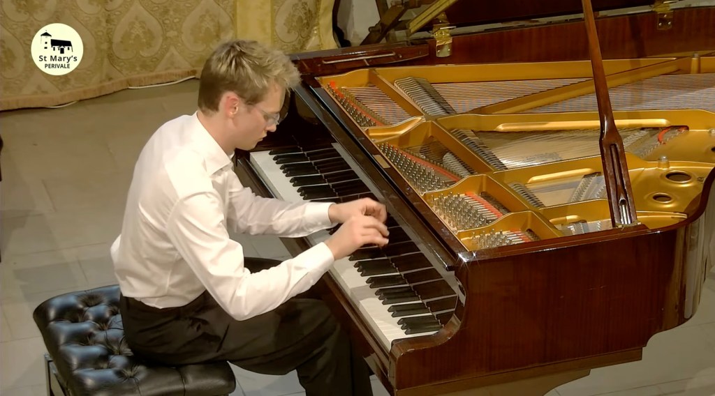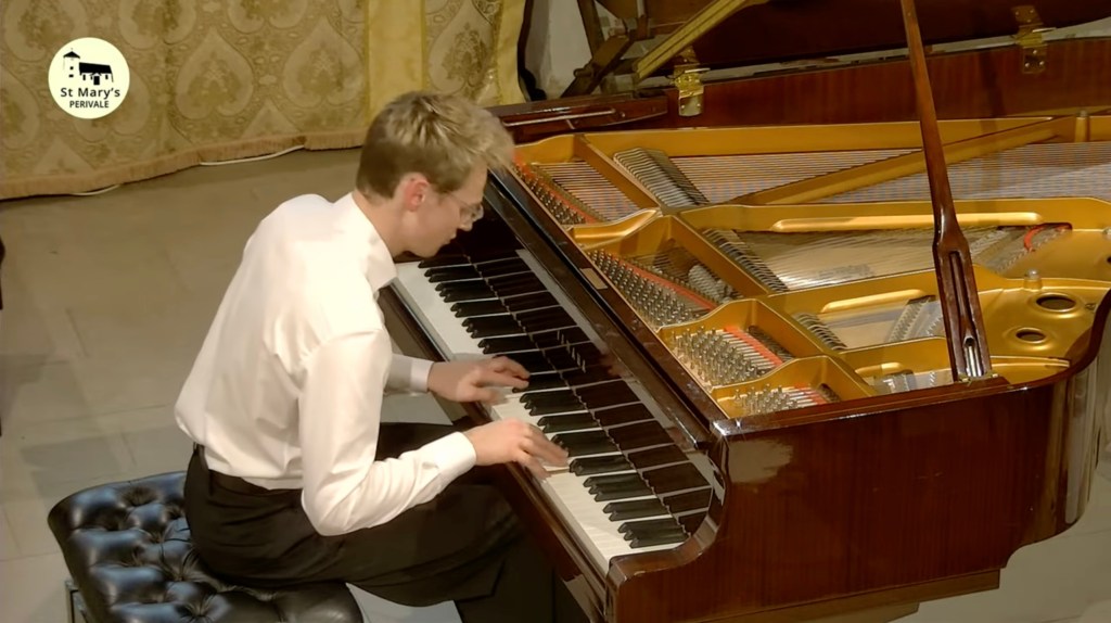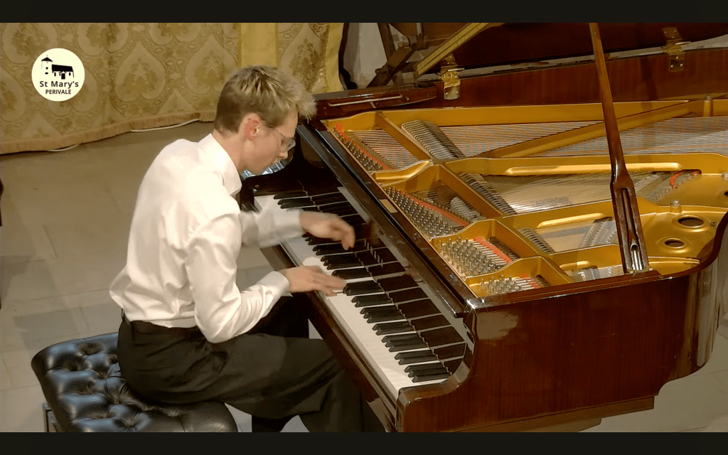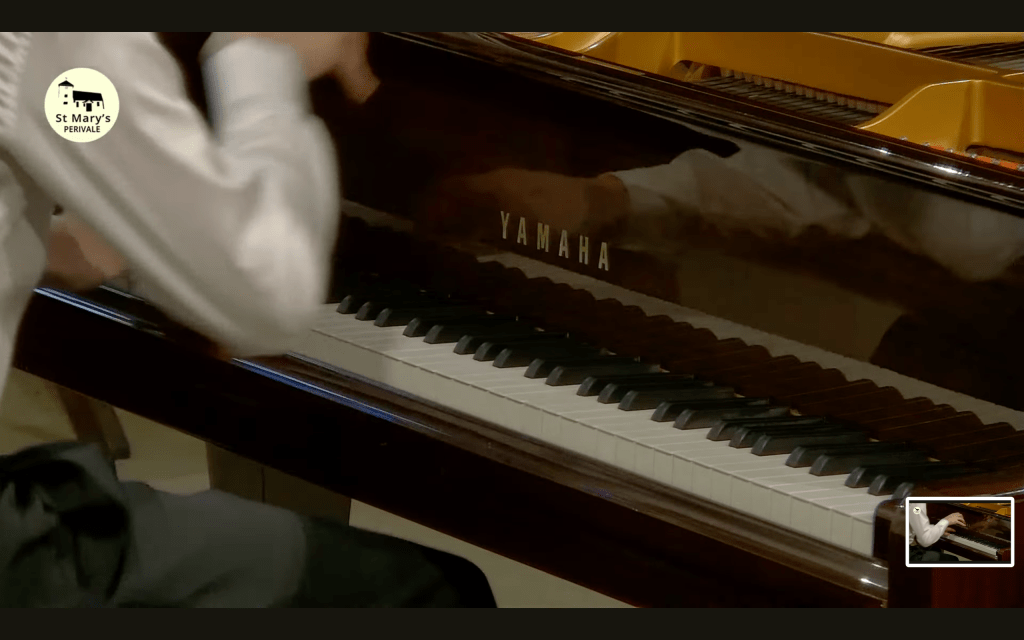 It was beautiful to see the caressing movement of Kasparas’s fingers as the lone song of the bird sang out with glowing resonant purity. Kasparas once again creating this lonesome atmosphere with poetic imagination and masterly use of the pedals. Streams of notes but always the song of the bird with piercing penetration of desolation and ravishment.