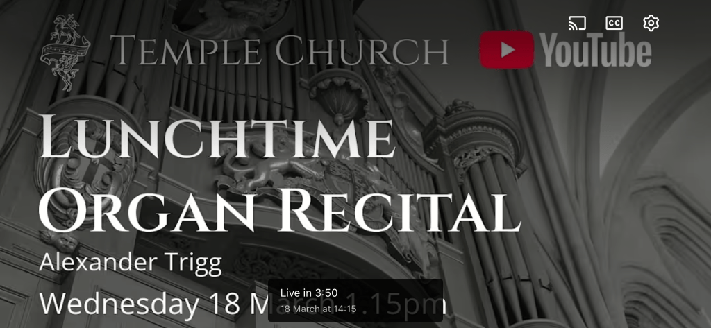 ‘Alex Trigg (Advanced Postgraduate Diploma course) performs on Wednesday at 1315 at The Temple Church, London.