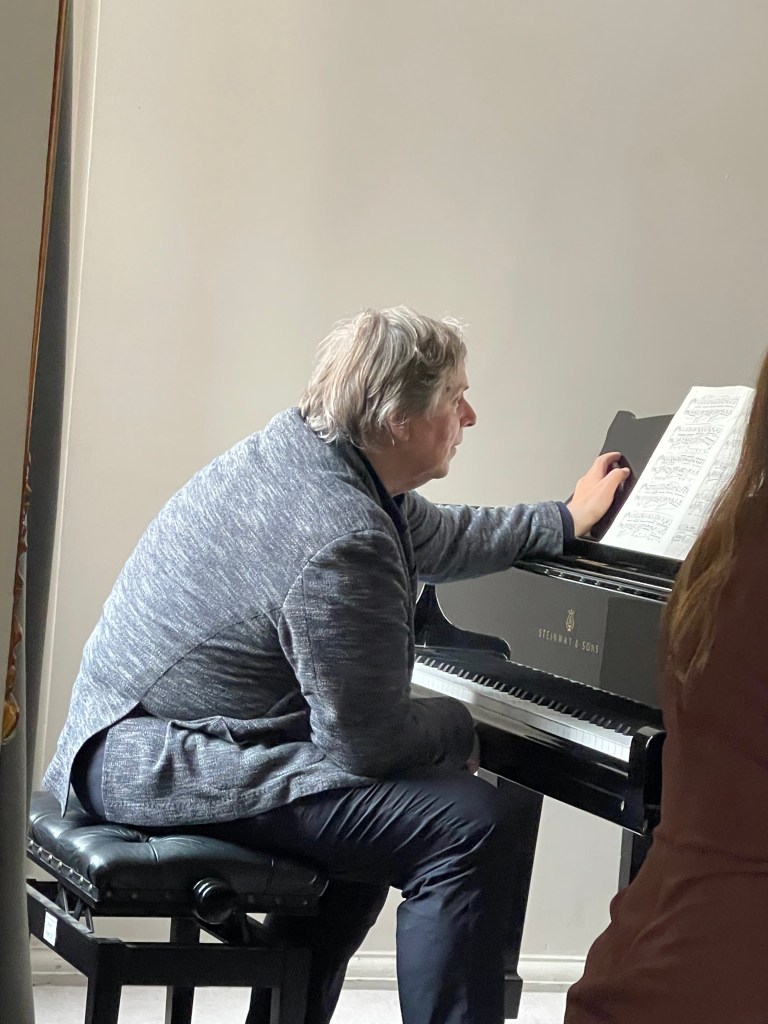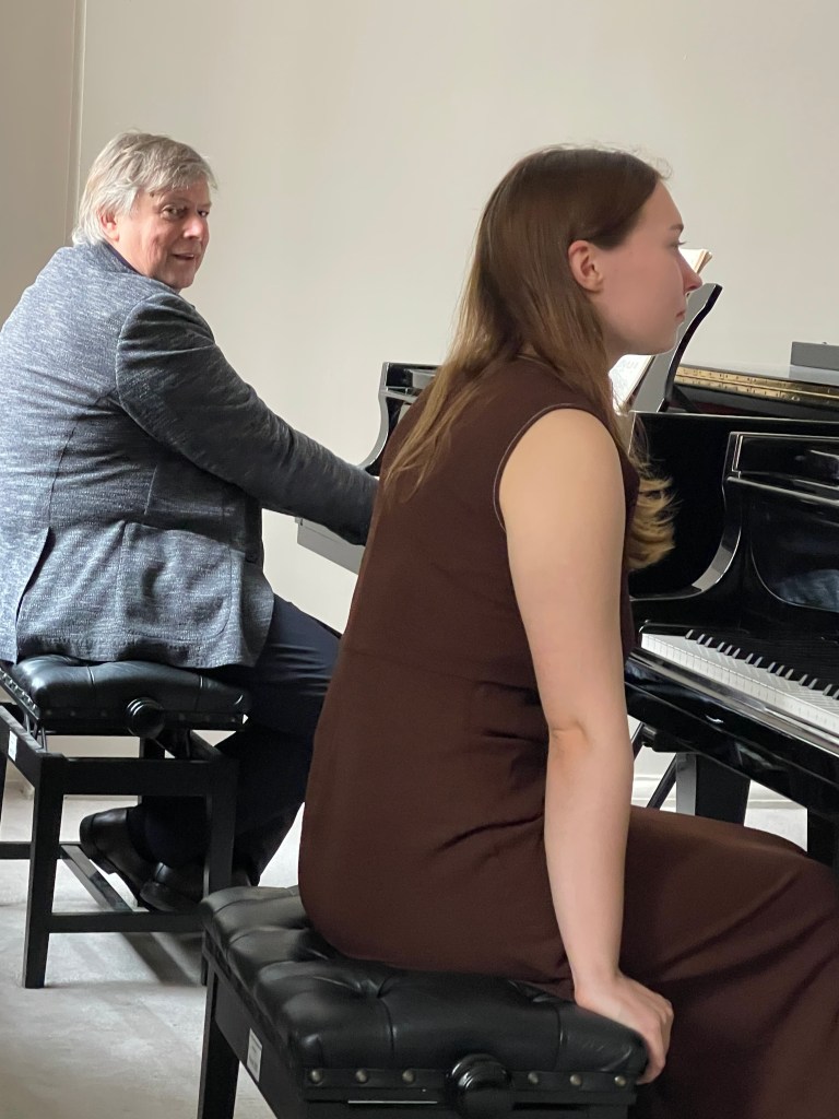 A duo that plays as one, as Giona played in the shadow of the lid of this magnificent piano.