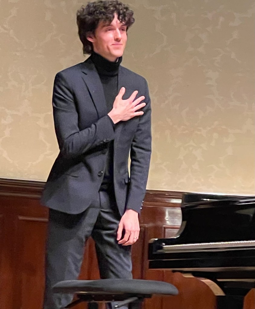 Tomos with youthful ‘joie de vivre’ in his veins had a better idea. as he treated us to Rachmaninov’s searingly nobile and nostalgic Étude Tableaux in E flat minor which brought him a well deserved ovation from a very full hall .