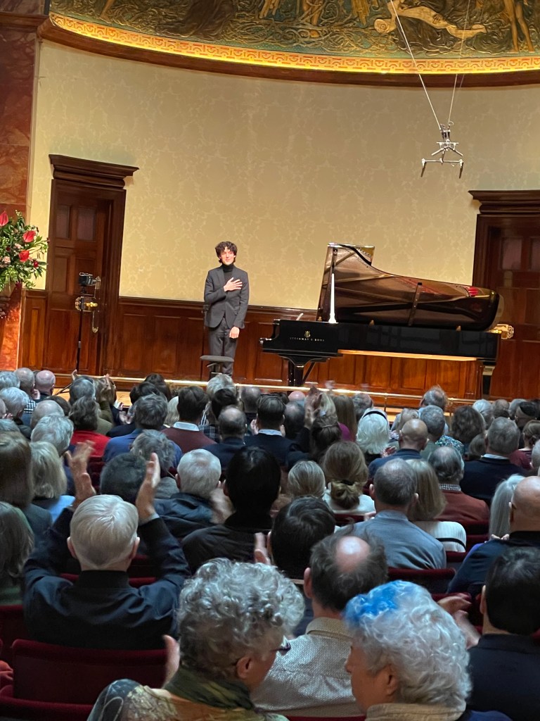 Chopin’s Barcarolle I have not heard Ignas play before but it is Chopin’s greatest masterpiece written towards the end of a life that had never seen Venice but perhaps could envisage it with even more magic with his genial soul. It is one long song which of course Ignas chose to finish his dream otigramme with today. There was magic in the air and Ignas even risked a passionate involvement that he had saved for this very special performance when his youthful fire and passion were just waiting to be ignited.