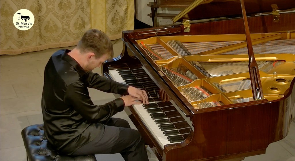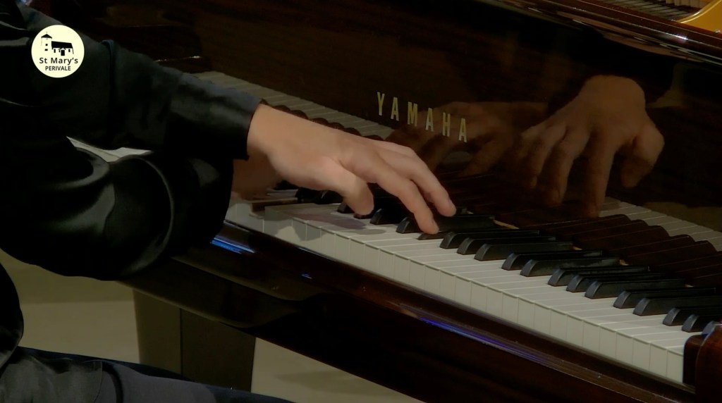 There was a sense of calm to Callum’s ocean until a deep bass note announced the tempest that is to strike with masterly playing of glissandi, that Callum played with the palm of the hand, just dusting the keys as they became washes of sound. Streams of notes were strewn over the entire keyboard until peace is gradually restored and a hymn of thanksgiving is heard in the midst of an ocean that is now calm. Here there was a masterly clockwork precision to the waves in the right hand. Wafts of sounds like waves and were thrown off with mastery and poetic ease as Callum shaped this movement into a tone poem of quite extraordinary effect.