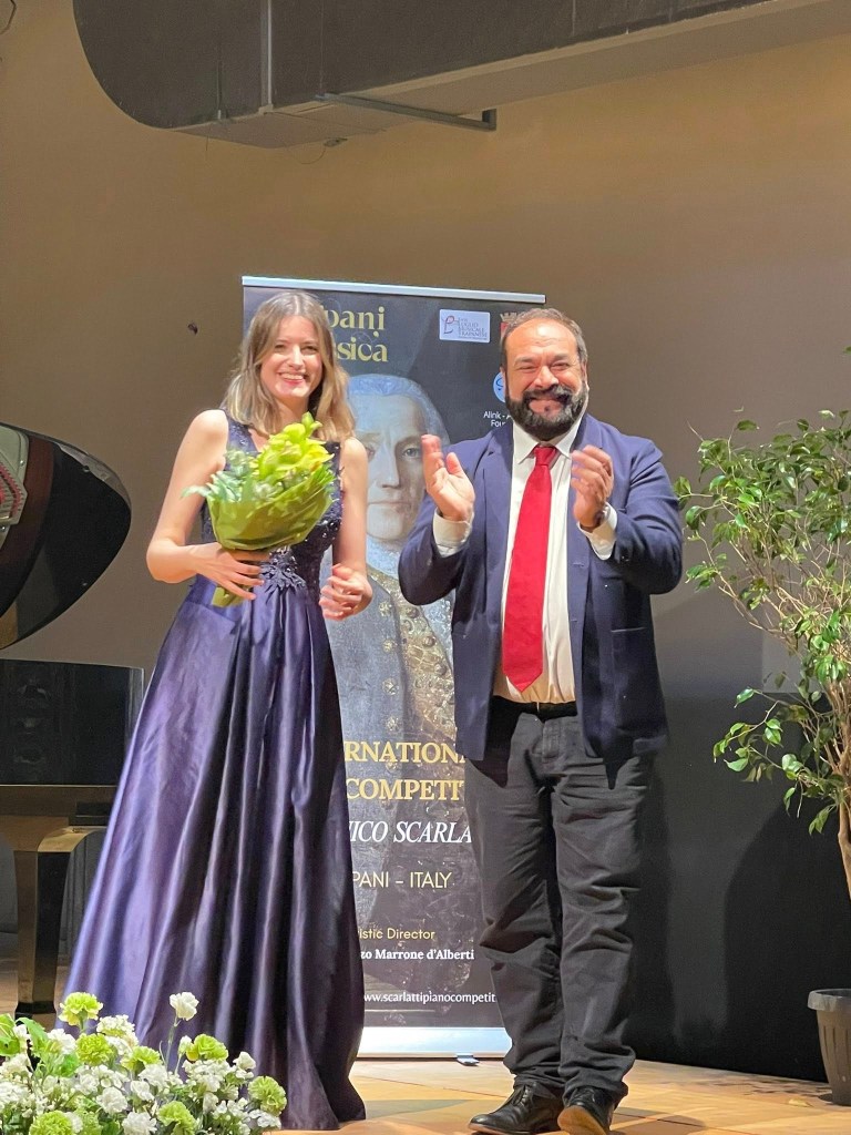 Today we were gathered to applaud the young winner of the very first Scarlatti International that had been presided over by another remarkable octogenarian lady pianist, Marcella Crudeli. Dina Ivanova born in 1994 on Christmas Day, went on from Trapani to take first prize at the Rome International which is Marcella Crudeli’s creation and is now in its 33rd year!