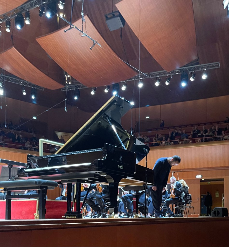 A cross between Levin and Schiff for historical knowledge but all Levit for the simple joy and mastery that he shares with all those that come within his radius. And tonight he was just one of the remarkable musicians on stage in the Santa Cecilia Hall in Rome. Discreetly moving with the music and sharing knowing looks with the players as their music making revealed secrets that can only happen in live music making.