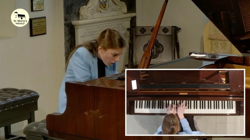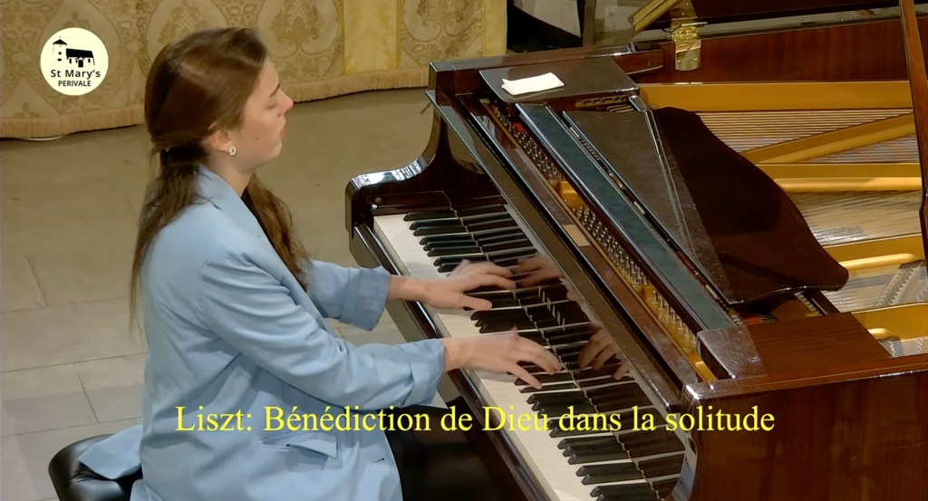 Salome allowed the tenor melody to emerge accompanied by bird like flutterings of radiance in the right hand that she played with remarkable fluidity considering their difficulty. Building to a climax of sumptuous full sounds of passionate intensity. A pastoral awakening of refreshing simplicity was gradually built into a burning intensity that burst into a cascade of notes spread over the keyboard with jeux perlé mastery.The melody returning to the tenor register with bird like beauty leaving a final ‘bénédiction’ of poignant beauty played with a rare sensibility.