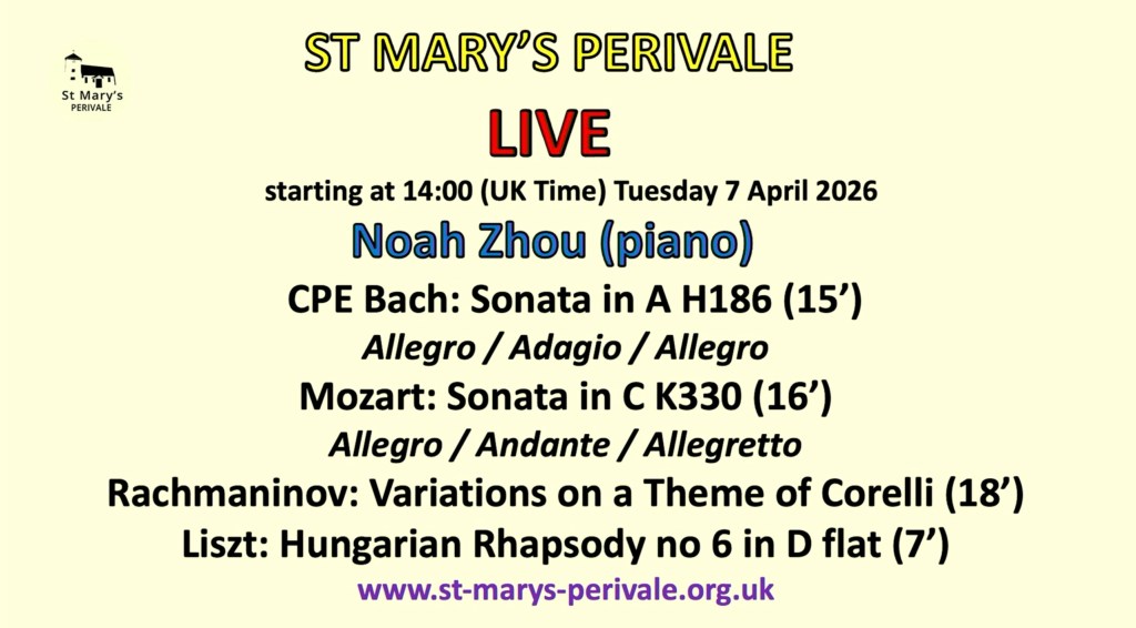 A fascinating new programme from Noah that he wanted to try out on his neighbours in Perivale. A programme that demonstrated his musicianship and transcendental mastery of the keyboard.