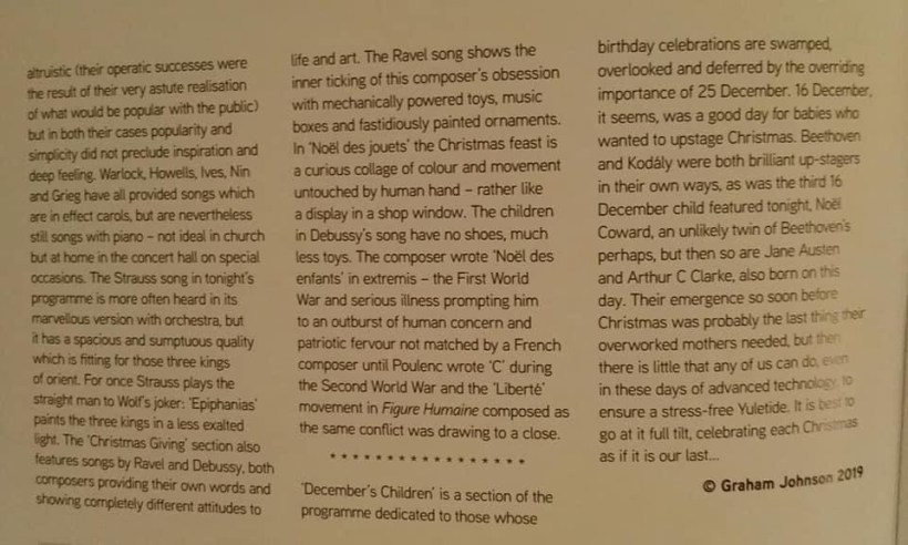 It was this joy of sharing her music with us that was so evident to all present on this very cold winter`s evening.