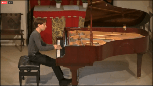 Italian-Australian pianist Jonathan Ferrucci has given concerts throughout Europe, Australia, the US and Japan. In London he has performed in Wigmore Hall, Barbican Hall, Milton Court Concert Hall. As winner of the Jaques Samuel Competition in 2016, his Wigmore recital was professionally recorded and he was invited to play at Fazioli Concert Hall in Italy. In 2018 he made his debut at Carnegie Weill Hall as part of the “Guildhall Artists in New York” project and was a winner at the International Bach Competition in Leipzig. In 2019 he was a Rising Star for Portland Piano International and gave a masterclass and recitals throughout Oregon.Jonathan studied at the Conservatory of Music in Florence with Giovanni Carmassi, then in London with Joan Havill at the Guildhall, where he completed a masters degree, Artist Diploma, and Artist Fellowship. His studies have been supported by the Leverhulme Trust, Jessie Wakefield Award, Guildhall School Trust and Tait Memorial Trust. Jonathan’s artistic development has been profoundly influenced by Aldo Ciccolini and Robert Levin, and by his ongoing studies with Angela Hewitt, as well as masterclasses with Murray Perahia, Richard Goode, Peter Frankl and Christian Zacharias.As co-founder of Made in Music, a non-profit, he organized two festivals bringing together musicians from eight countries. He believes that music is a universal language that can unite people from different cultures and backgrounds. Alongside his time at the piano, Jonathan practises Ashtanga yoga and considers it an integral part of his work, and essential in his life.Illustrated below for Yoga day :