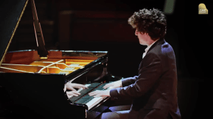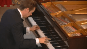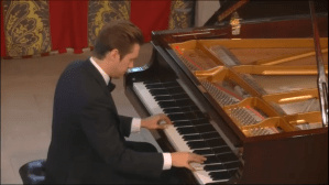 Mussorgsky’s Pictures at an Exhibition is a work in 10 movements that was inspired by a visit to an art exhibition. Each of the movements represents one of the drawings or artworks on display. Mussorgsky composed Pictures as a memorial to his friend, the Russian artist Viktor Hartmann, who had died in 1873 at age 39. Shortly after the artist’s death, Mussorgsky visited a retrospective exhibit of Hartmann’s sketches, stage designs, and architectural studies and felt the need to capture the experience in music. By early summer 1874, he had completed the work, a lengthy and fiendishly difficult suite for solo piano. At the time of Mussorgsky’s death in 1881 from alcoholism, the piece had been neither performed nor published. It fell to his friend and colleague Rimsky-Korsakov to tidy up the manuscript and bring it to print in 1886.It is a very impressive showpiece for piano and was the ideal piece for Petr to conclude this series with.