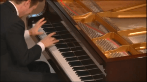 The Adagio molto introduction to the Rondo was played with a stillness and an aristocratic sense of weight that gave great meaning to every note.Beethoven had substituted the original slow movement, that was later to appear as the Andante Favori, in favour of this short but poignant introduction. The Rondo theme almost Schubertian in character floating as Beethoven indicates on a cloud of pedal before embarking on the most strenuous episodes, where there seems to be at times explosions of almost Lisztian euphoria. Beethoven’s very precise pedal effects were interpreted by Petr and transposed to the modern instrument with great effect.The tumultuous final episode before the Prestissimo coda was quite overwhelming in its rhythmic insistence.The coda kept in perfect control which gave time to play each note of the infamous octave glissandi without having to wet his fingers as Serkin used to deftly do!