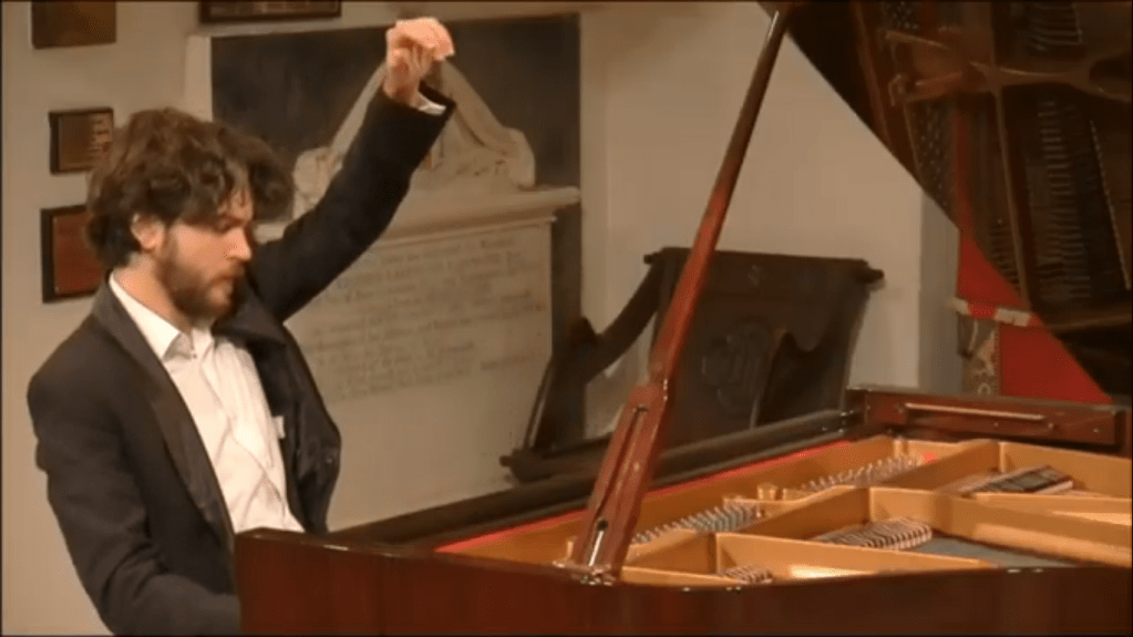 Still in his early twenties he has been preparing , during the long lockdown, the Art of Fugue ,one of Bach’s infinitely complex works that even the composer left unfinished…infact it dissolves into the infinite after 14 fugues and 4 canons………a riddle that is still left unsolved to this day.