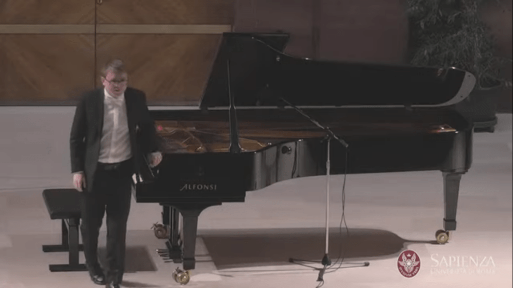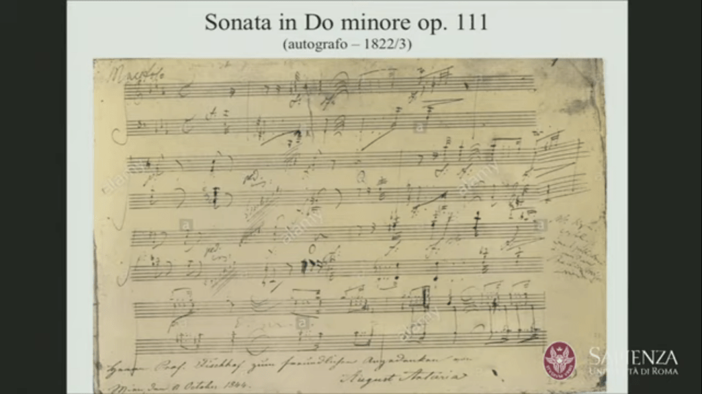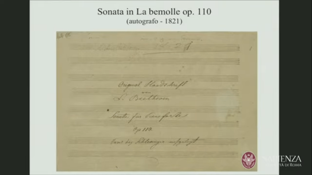 An unexpected on line concert without an audience due to the restrictions reintroduced for public performances in Italy.Some interesting references to Adorno,Bekker,Rosen and Mann in Professor Rostagno’s brief but informed introductions as he attempted to explain what he thought was the message that lay in these two works.The catastrophy and return to life of op 110.The coming to terms with contrasts in life and the acquisition of simplicity in op.111.