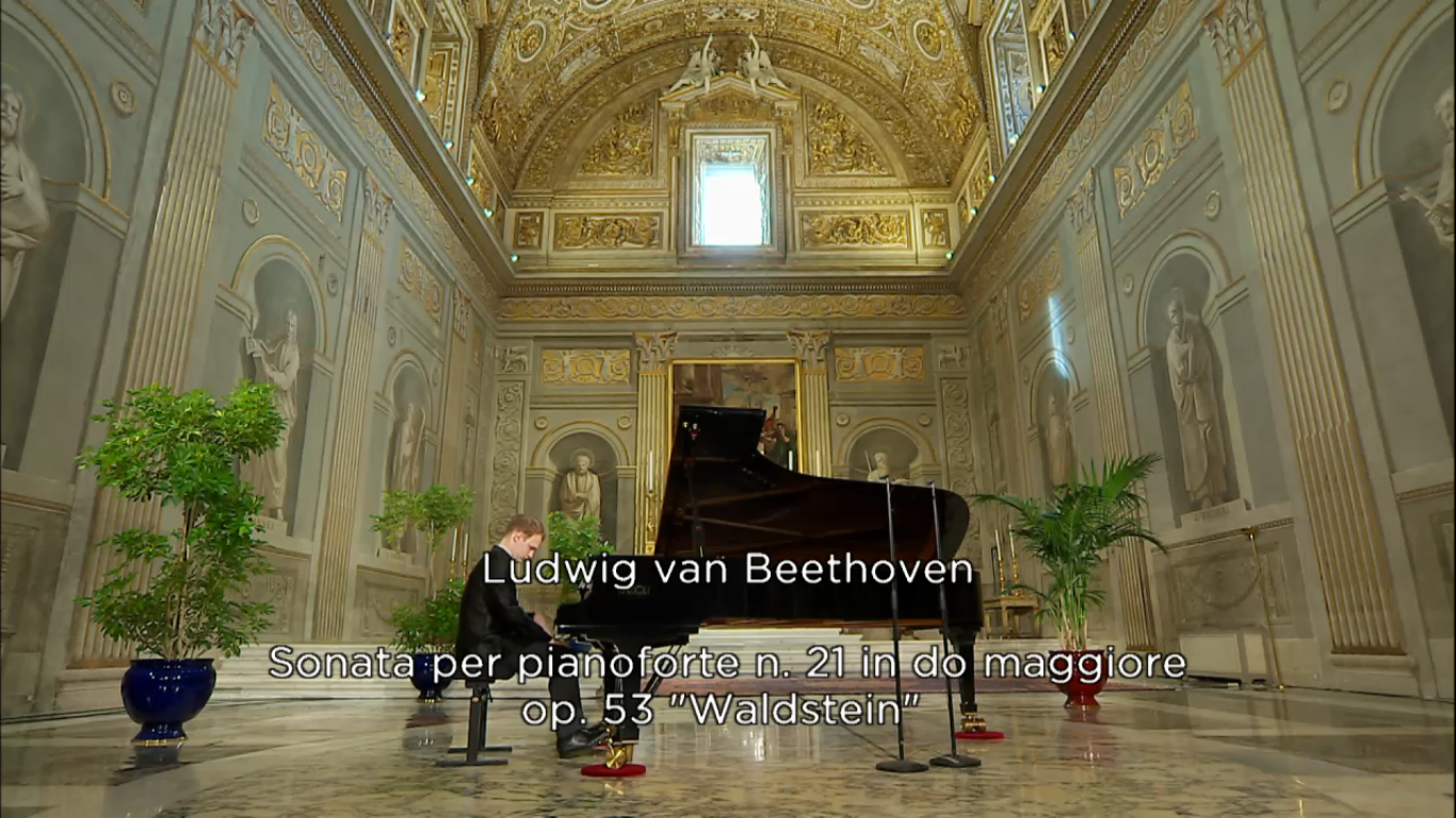 A very interesting programme of Beethoven’s last two Sonatas:op 110 and op 111 in the last of a series of three concerts dedicated to the composer in his 250th anniversary year.The concert was presented by Rome University in collaboration with the German Embassy.It was fitting that the young Italian pianist Filippo Gorini should be invited to play both Sonatas as he had won the Beethoven Competition in Bonn at the age of 20 and has since been taken under the wing of Alfred Brendel.His first two CD’s of Beethoven op 106 (Hammerklavier) op 111 and the Diabelli Variations have been rapturously received by the critics.