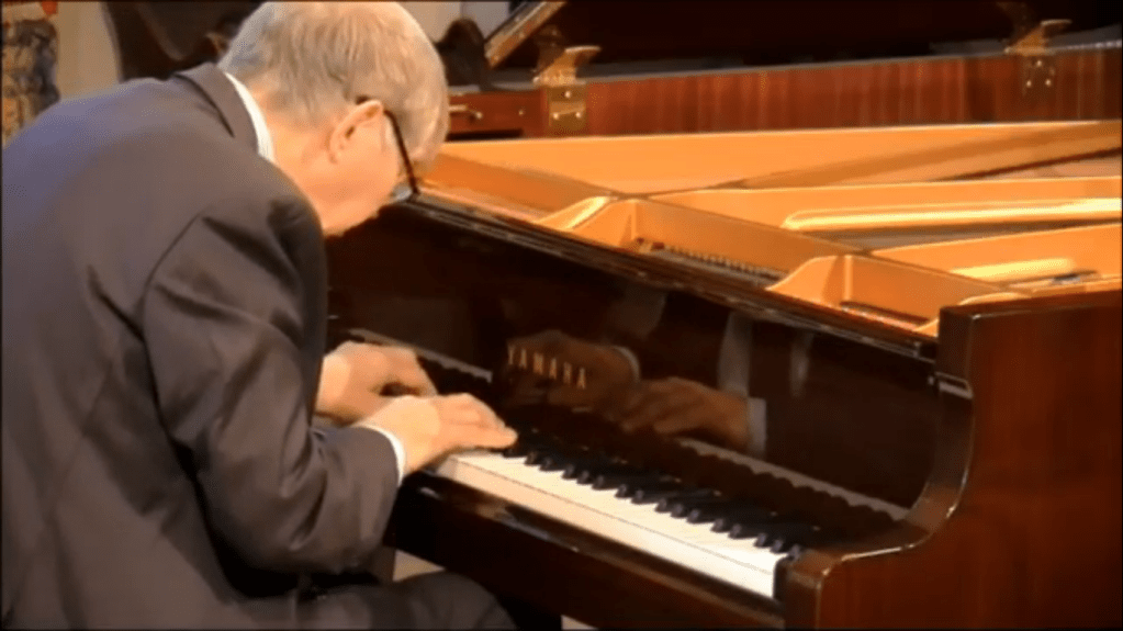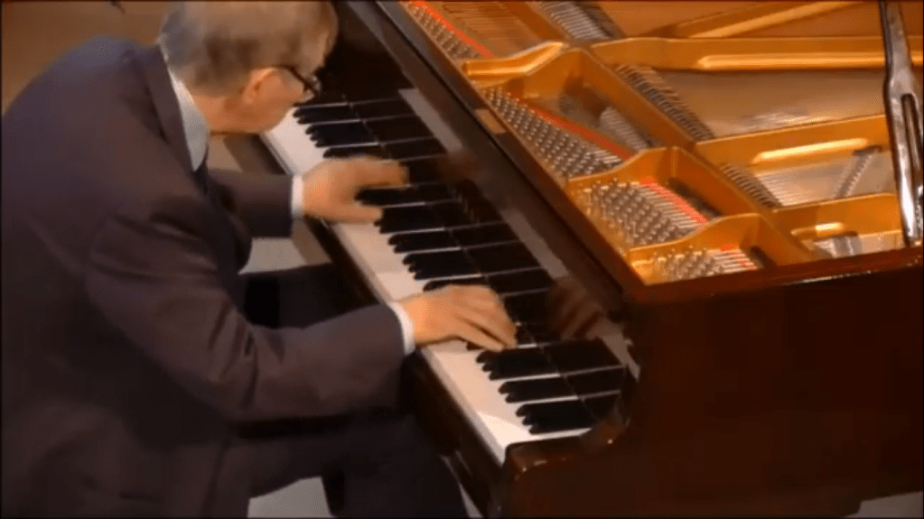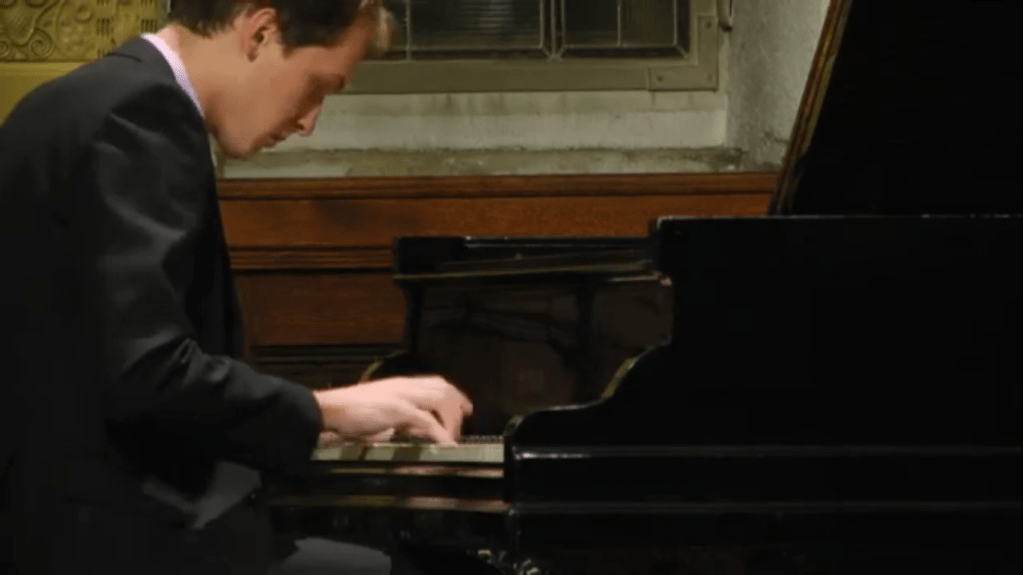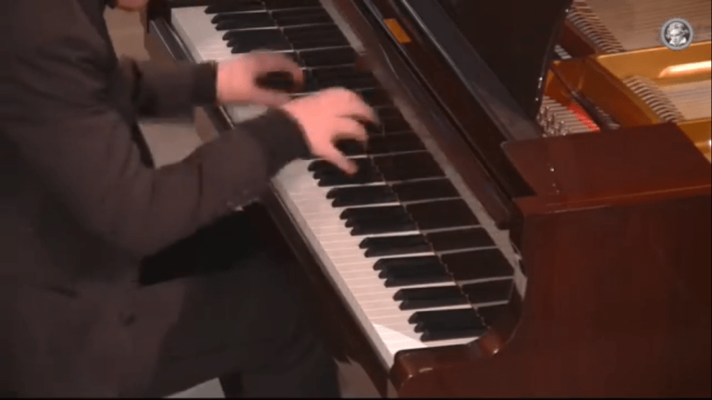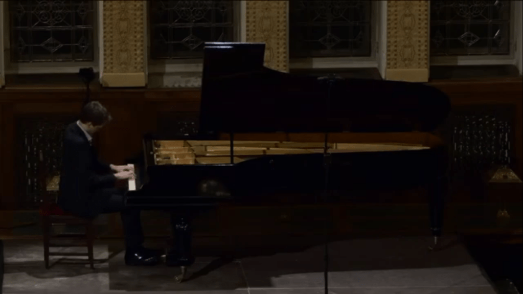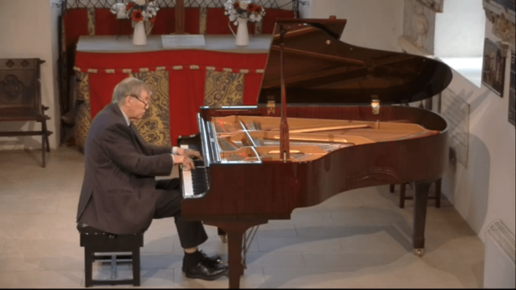 “This massive set of variations was written by Franz Liszt in 1862, a very difficult time in his life. Two of Liszt’s three children had died within three years of each other;this was written after the death of his daughter Blandine when he had resigned his position of Kapellmeister to the court of Weimar due to continued opposition to his music These variations, whose title roughly translates as ‘weeping, plaints, sorrows, fears,’ are based on a theme from a Bach cantata of the same name, and display throughout radically chromatic harmonies suggesting anguish and despair. A fierce introduction leads to the theme and 43 variations, followed by a chromatic development in the shape of a recitative, and then a group of freer, faster variations, culminating with the choral ‘Was Gott tut, das ist wohlgetan’ (which also ends Bach’s cantata) and a brief coda in which the two themes are juxtaposed.It was one of the last pieces that the ninety year old Perlemuter had on his music stand and it is indeed an extraordinary work.Played by Ivan with great control and a fearless technical prowess as he embarked on the left hand octaves and then the enormous waves of sound across the entire keyboard.To be greeted by the simplicity of the final choral played with a luminous sound that led to the final ecstatic declaration of faith with which it ends.