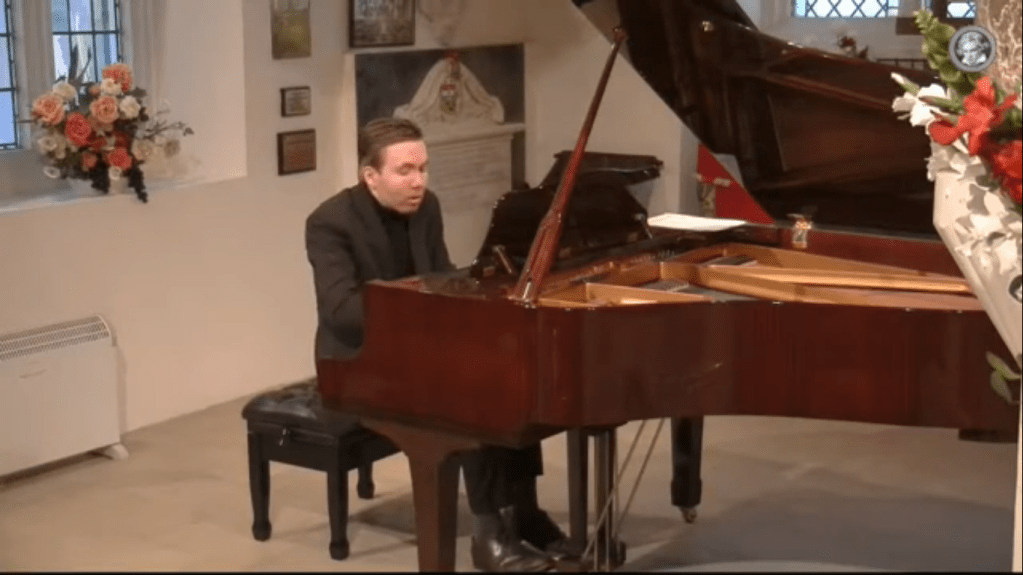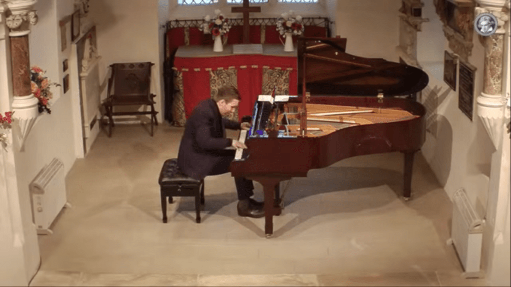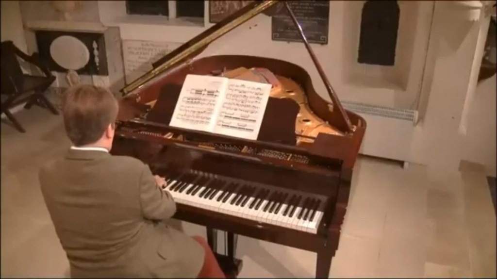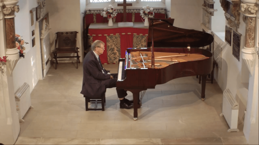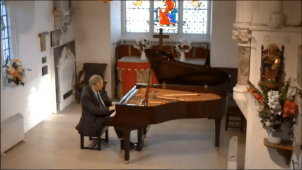 ‘An eventful afternoon at St Mary’s Perivale for my 1000th concert recital with a programme of Beethoven Appassionata and Schumann Fantasie. I get bad nerves before solo performances, and became paranoid about having a memory lapse in a live concert so I recorded the recital a few days ago. By Murphy’s law the machine playing back the recording today broke down at 40 mins – at the end of the Schumann 1st movt. Sincere apologies to everyone who was watching the recital. I have now uploaded the Schumann as a separate file. The whole episode will teach me to stay away from solo performances in future.’