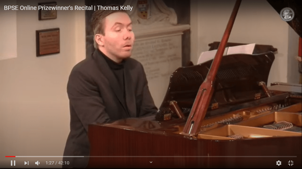 I have heard Thomas Kelly on many occasions since listening to him quite by chance at the Schumann Competition at the RCM.I was not surprised that he won first prize with a very persuasive performance of Carnaval – the work with which he chose to finish this short recital for the BPSE at St Mary’s Perivale.