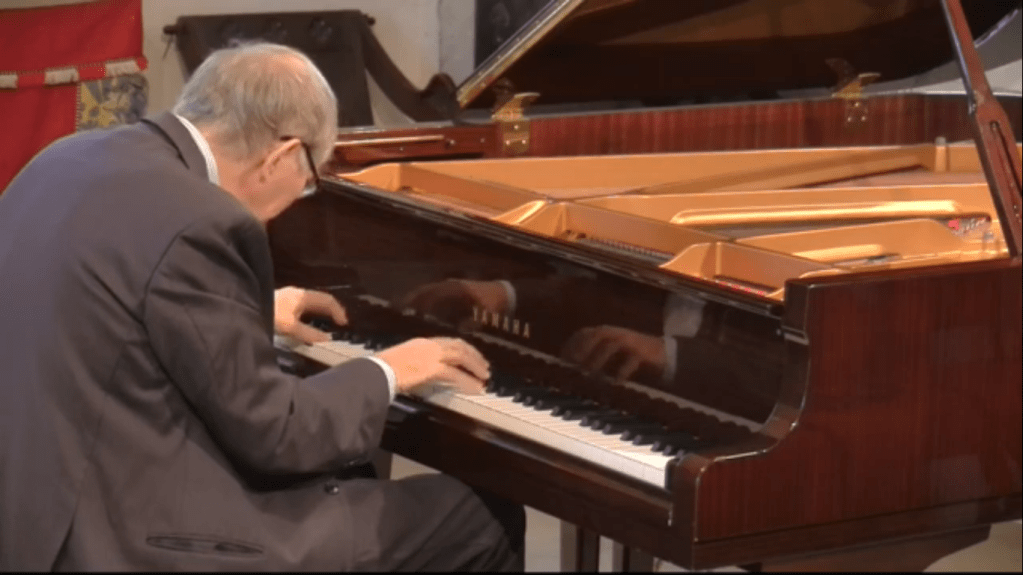 Wonderful to see Aquiles delle Vigne again after the concerts and masterclasses that he gave for us in Rome.His visits brought a radiance not only to us all but especially the students whom he helped with his great experience and humanity .A recital prefaced by some thoughts about the meaning of music.’An artist must trasmit ethics that will influence us all as human beings.’ Schnabel said that ‘ the truth is not in the note but behind and beside it.’ Liszt said that’ the score is only half the story that must be completed by the artist.’A final statement :’You are a pianist if you are born with the piano,suffer with the piano and die with the piano.In that case I will consider you a pianist!’