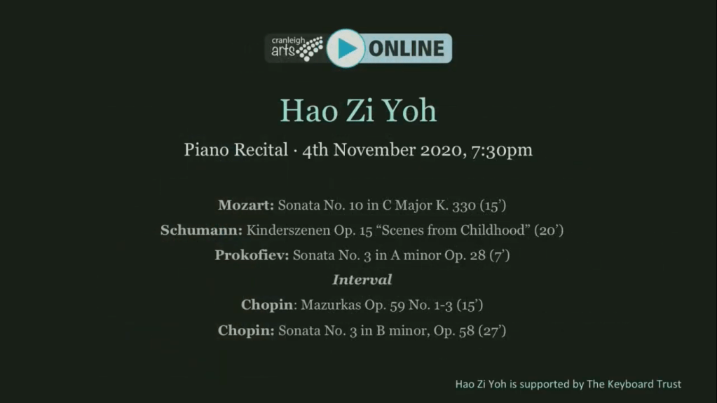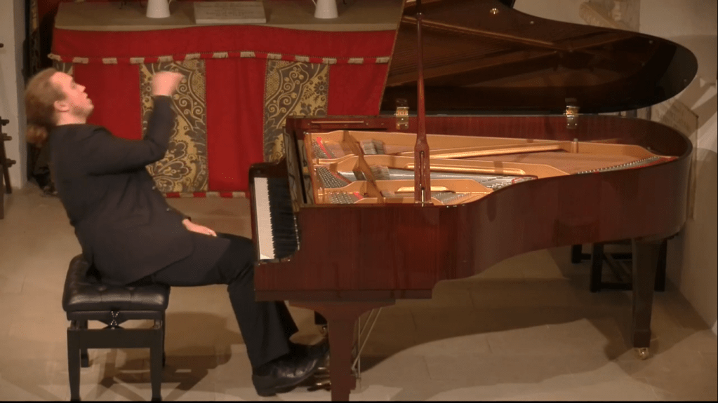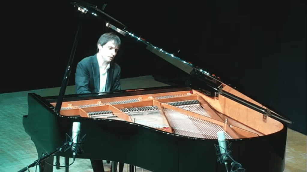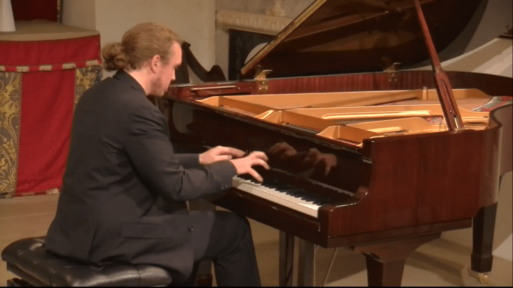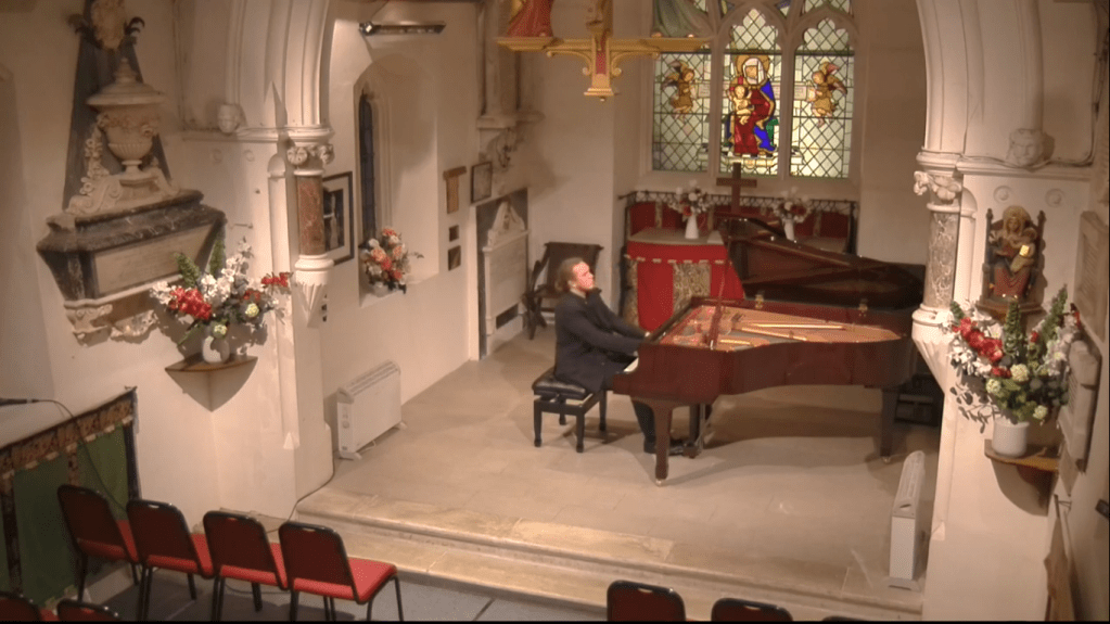 A fascinating recital by this young Romanian pianist for the past ten years living in the UK – first on a special scholarship to a boarding school in Edinburgh and from there to the Glasgow conservatory and finally to London.His fiancée is the singer Charlotte Hoather – two attempts at marriage have been ruined by the Covid crisis but in the meantime they intend to share their music and unite their comunity
