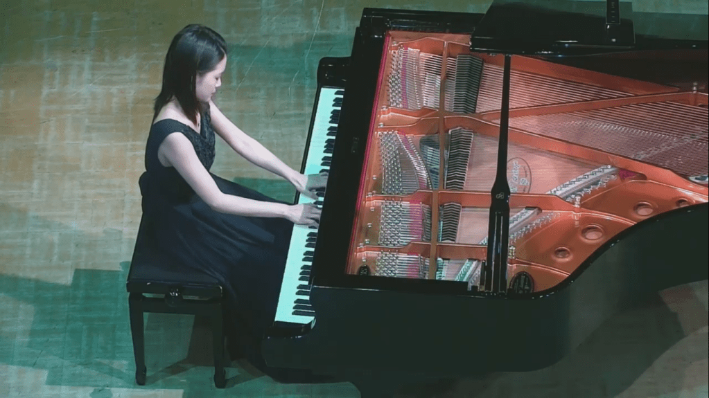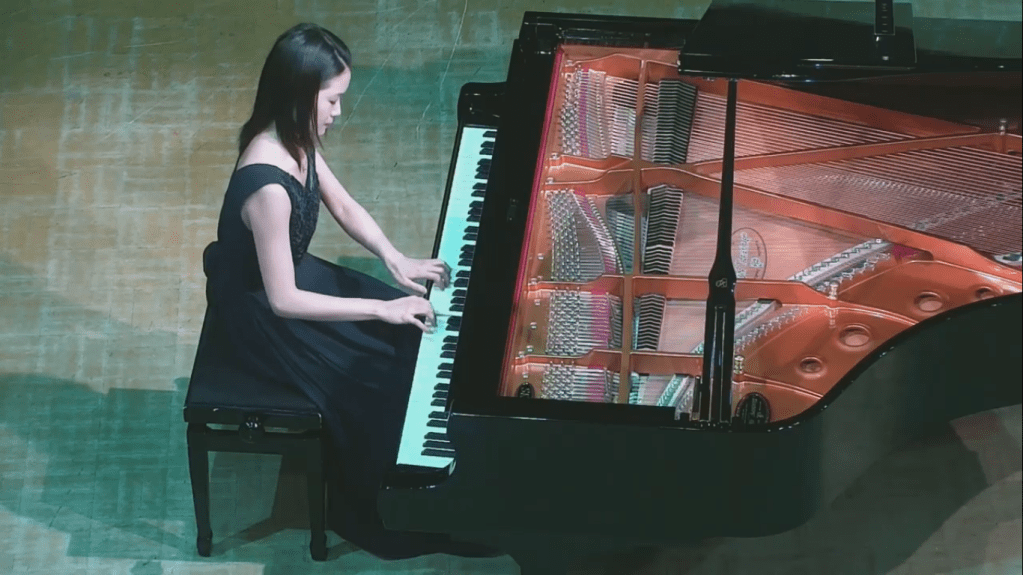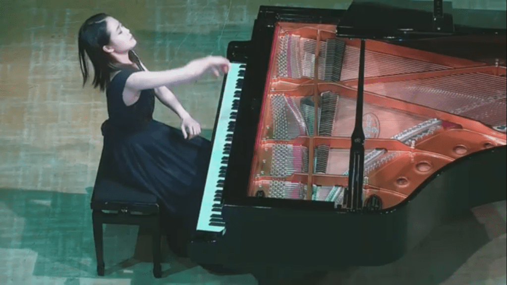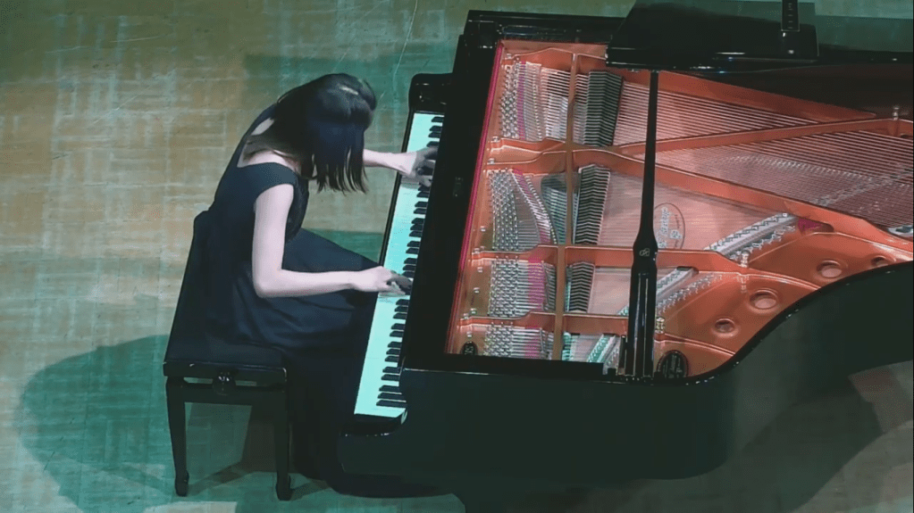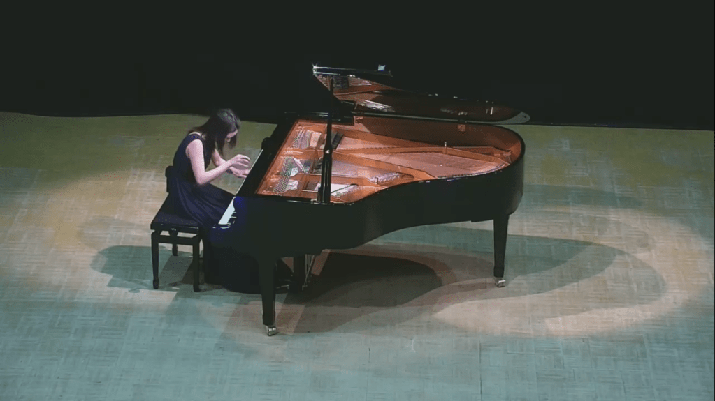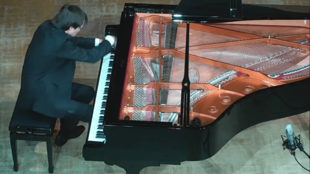 To be awoken by the bells of Carillon resonating and almost Messiaenic in its moving dissonance.Whispered responses from the faithful answered by the bells.A wonderful use of the sustaining pedal gave great resonance to the ever vibrating bells.Ringing out a final 12 times – each time slightly different with whispered responses arriving on the final major chord – transformed and redeemed!A very moving performance that I would love to hear more often in the concert hall.