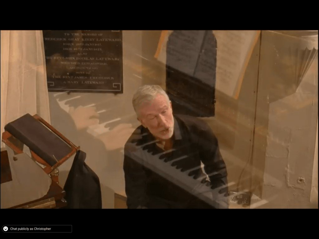 Choral was inspired by the orthodox liturgy- almost a prayer as George described it .A confession of sin ,redemption and forgiveness.It was played with some wondrous sounds from every part of the keyboard.A musical language that fits no specific category but is strangely hypnotic and obviously for George at the very roots of his being.An ending of pure magic barely whispered as it disappeared into the very heights of the piano.