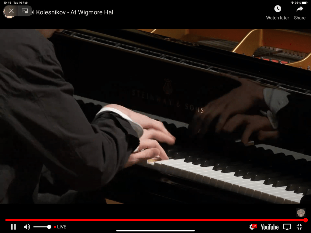 A truly amazing performance of ‘Alborada del gracioso’ where suddenly Emanuil let his temperament take over knowing that his technical command was complete.Exhilarating ,relentless Spanish rhythms were played with astonishing clarity.An extraordinary ‘tour de force’ with repeated notes thrown off with ease as were the treacherous double glissandi.The orchestral colours though were missing as comments to a heartbreaking recitativo and later the sudden interruption of full orchestra in the animal like frenzy that was taking us to the final overwhelming bacchanal .But is was a quite extraordinary performance and of course the weight and strength will come as he matures with these works.I remember Moiseiwitch when he was dying in hospital and he asked to hear an old piano roll recording of ‘Jeux d’eau’.With a twinkle in his eye he said :’Yes ,I could play like that in my youth.’’La vallée des cloches’ was wonderfully atmospheric and I loved the final bass bells that were allowed to reverberate.I was missing here more than elsewhere the ‘weight’ that gives an inner propulsion to the sounds.Rubinstein in his recording of French music is the supreme example and although I doubt that Rubinstein could have played as well as Emanuil at his age ,the maturity that will come from living with the music much longer will obviously come to this superb young artist in what no doubt will be a long and celebrated career.