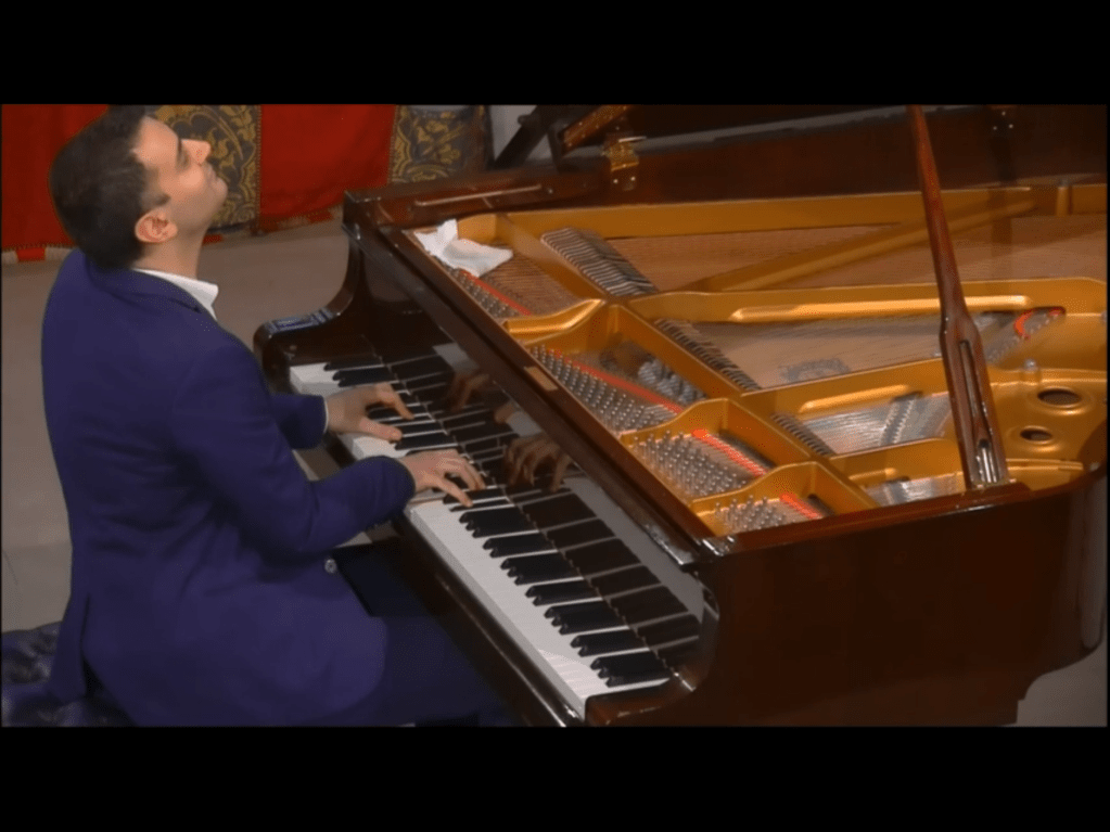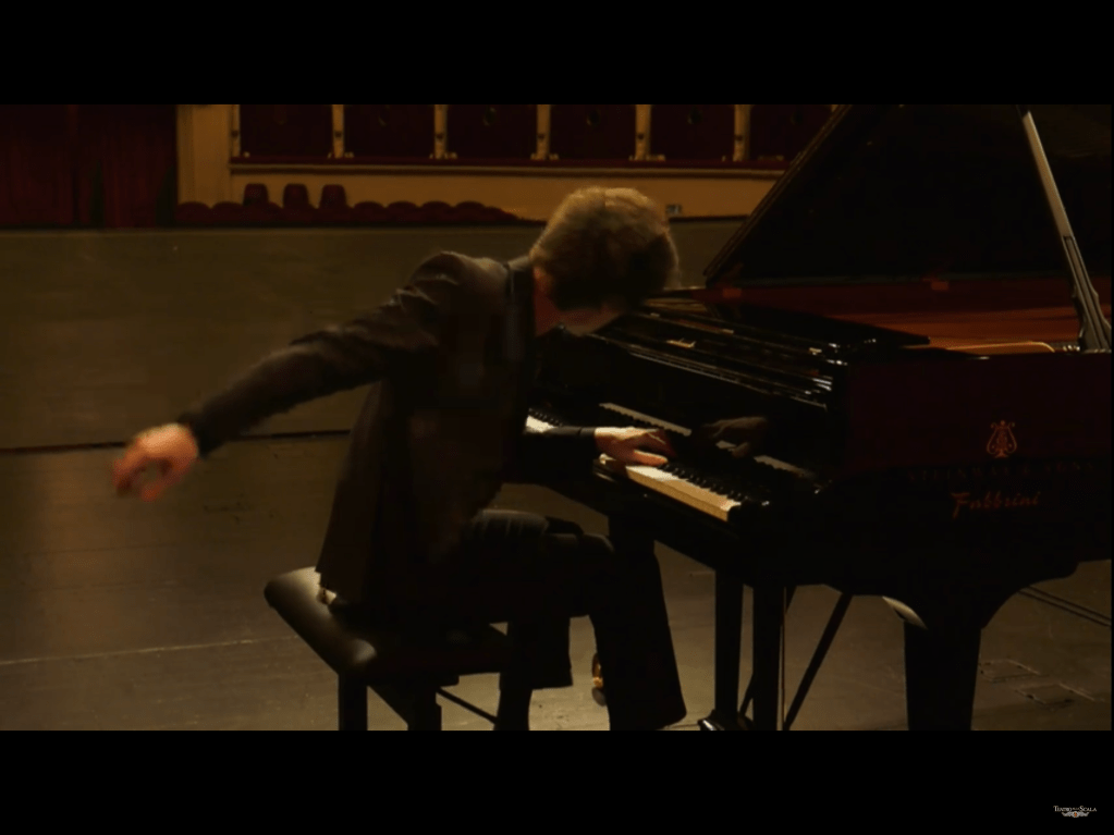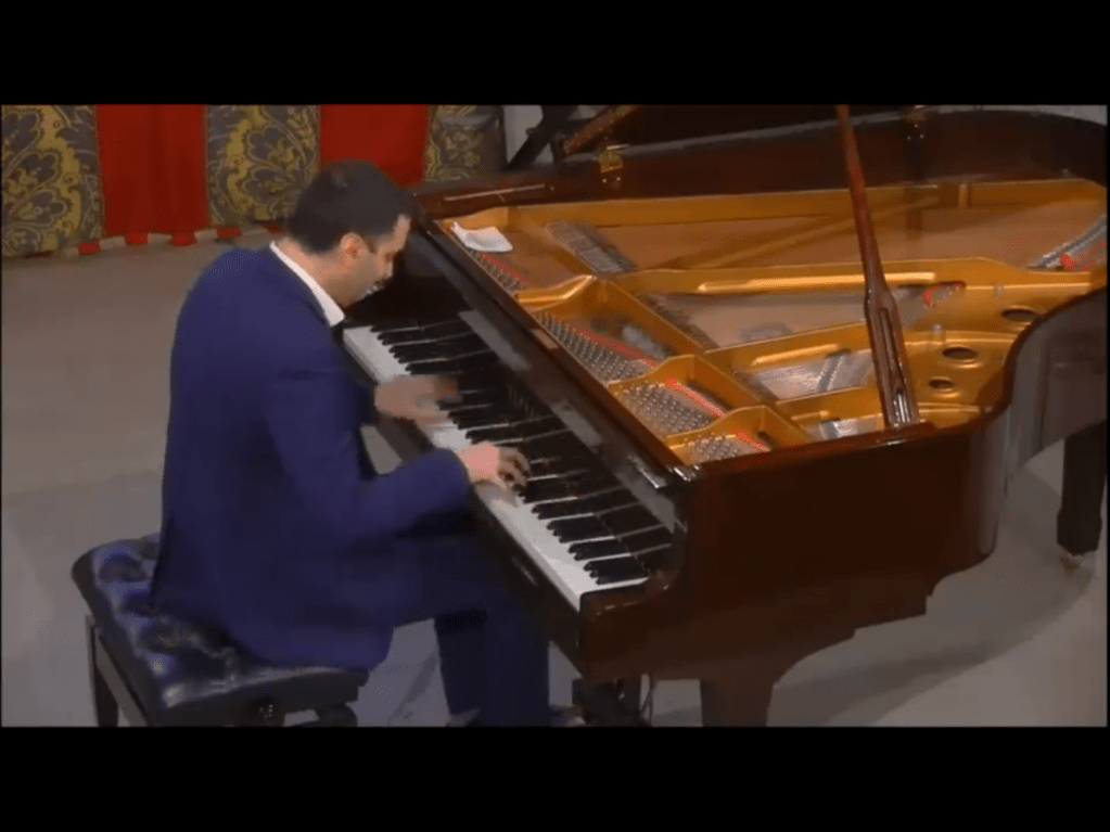 It is indeed an amazing work that in the span of only 15 minutes there is sublime inspiration and ecstasy,deep meditation and exultation.A performance from this young musician that belied his years.Of such overwhelming maturity where nothing was overstated but played in this vast empty Mecca as though there was a golden sheen around this magnificent Fabbrini Steinway.A protection that would not allow him to make anything but sublime sounds to the glory of a believer as thanks to his parents who had gone to a world of Glory and Hope.It was indeed a very moving experience and one that quite frankly I was not expecting.I had heard Emanuil in Bolzano playing Brahms Handel variations and Saint Saens noble but rather sugary Second Piano Concerto.Nothing had prepared me for the depth of feeling and range of sounds but above all control and intelligence.Beautifully atmospheric opening with the bass notes on this magnificent instrument barely audible but because of his extraordinary sense of balance they emerged from the magic that he had created from the very first murmur.Yearning harmonies followed on a continuous flow of sounds.The richness of the chorale commented on by whispered sounds on high that in lesser hands could have had quite a different effect than that of finding true gold.It built up to an ecstatic climax on a frenzied wave of full sumptuous sounds before subsiding again to deep meditation and a final barely audible contemplation that was very moving.
