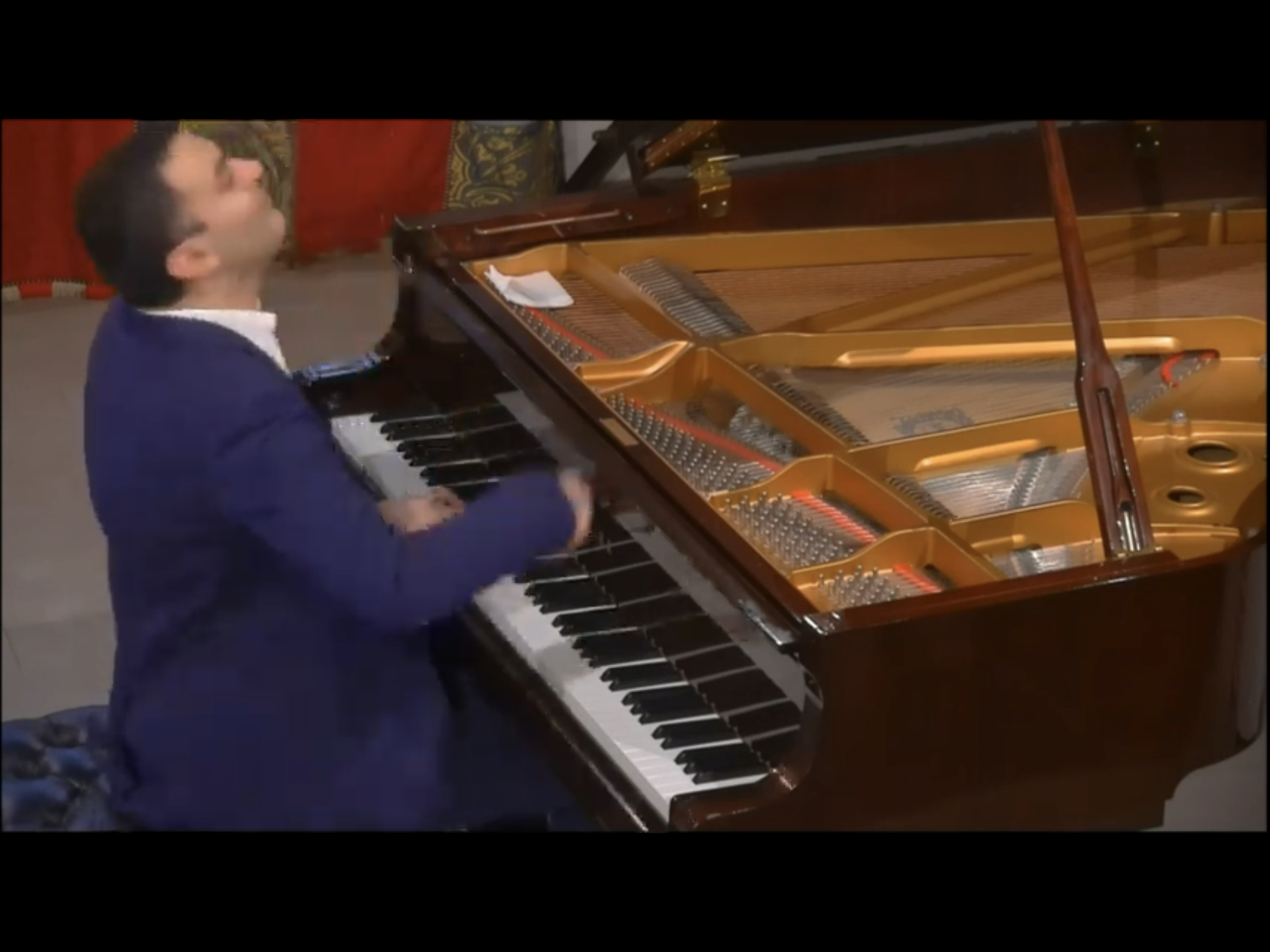 It is indeed an amazing work that in the span of only 15 minutes there is sublime inspiration and ecstasy,deep meditation and exultation.A performance from this young musician that belied his years.Of such overwhelming maturity where nothing was overstated but played in this vast empty Mecca as though there was a golden sheen around this magnificent Fabbrini Steinway.A protection that would not allow him to make anything but sublime sounds to the glory of a believer as thanks to his parents who had gone to a world of Glory and Hope.It was indeed a very moving experience and one that quite frankly I was not expecting.I had heard Emanuil in Bolzano playing Brahms Handel variations and Saint Saens noble but rather sugary Second Piano Concerto.Nothing had prepared me for the depth of feeling and range of sounds but above all control and intelligence.Beautifully atmospheric opening with the bass notes on this magnificent instrument barely audible but because of his extraordinary sense of balance they emerged from the magic that he had created from the very first murmur.Yearning harmonies followed on a continuous flow of sounds.The richness of the chorale commented on by whispered sounds on high that in lesser hands could have had quite a different effect than that of finding true gold.It built up to an ecstatic climax on a frenzied wave of full sumptuous sounds before subsiding again to deep meditation and a final barely audible contemplation that was very moving.