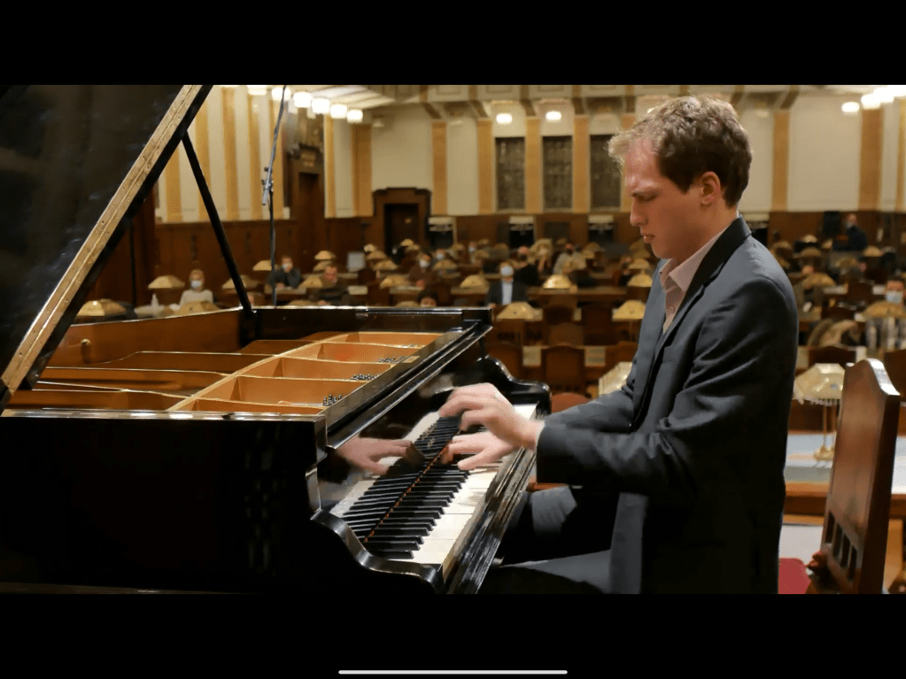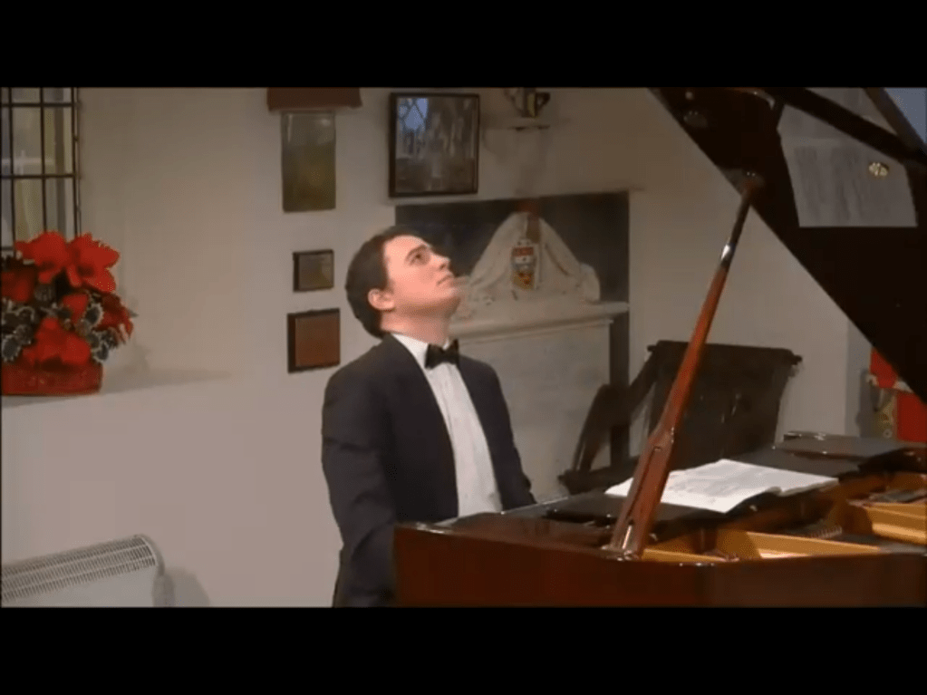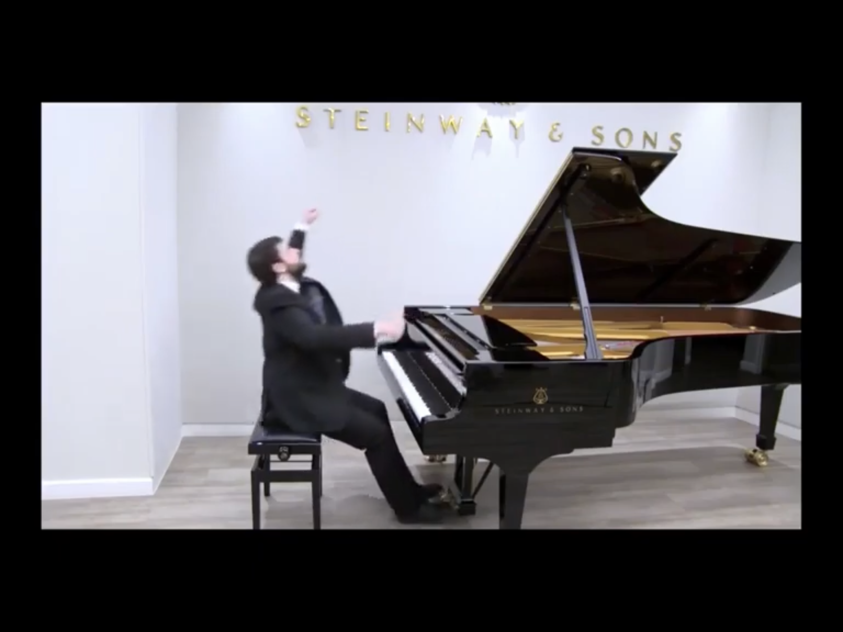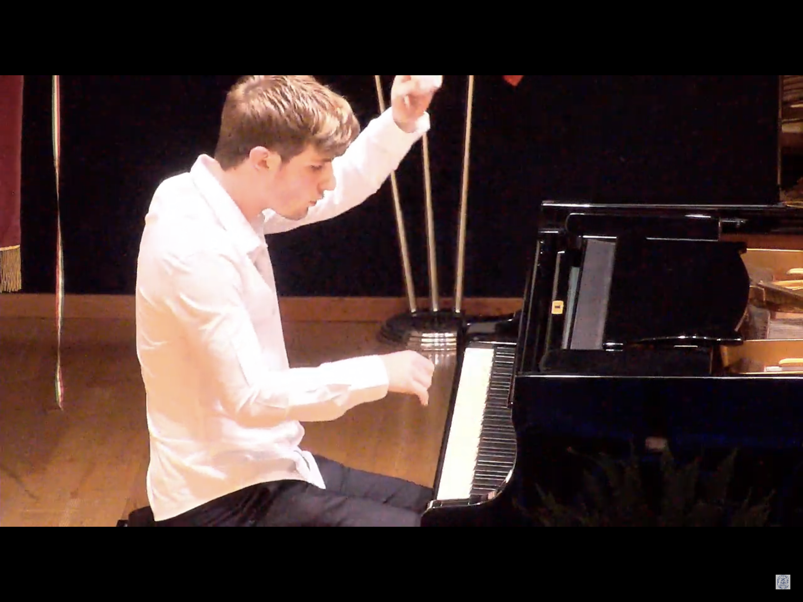 Davide Scarabottolo certainly showed us why he had won the prestigious Sergio Cafaro prize.An exhilarating display not only of musicianship but also of showmanship. I got rhythm had it’s final glissando taking him onto his feet with the sheer joy of his playing. But the concert had started with Bach D major Toccata played with great musicianship and intelligence. If only the opening flourishes could have had the same exhilaration that he bought to Jelly Roll Morton or Gershwin. Davide there are no rules for an artist like you. Learn your lesson ,of course,then put the book away and let your extraordinary talent take over and do the rest. It was an intelligent reading of remarkable clarity with the infectious rhythm of the Toccata and the astonishing excitement he brought fearlessly to the end that gave a hint of what was to come later. Six of Liszt’s transcendental studies were played with such sumptuous sounds as he threw himself into the immense technical challenges with great courage the notes seeming to pour out of his fingers as he imbued them with such romantic and passionate sounds. This young man looking the part too showed us just what poetry there is to be found in Paysage and Harmonies du Soir as well as the passionate outpouring of a romantic soul in the beautifully descriptive Chasse Neige or the F minor study. What demons possessed him too in Prokofiev’s aptly named Suggestion Diabolique. But it was the honky-tonk piano of Jelly Roll Morton and the show business of I got rhythm which I am sure had all the spectators cheering him on as they obviously will too when future live performances are permitted and his career surely well established.