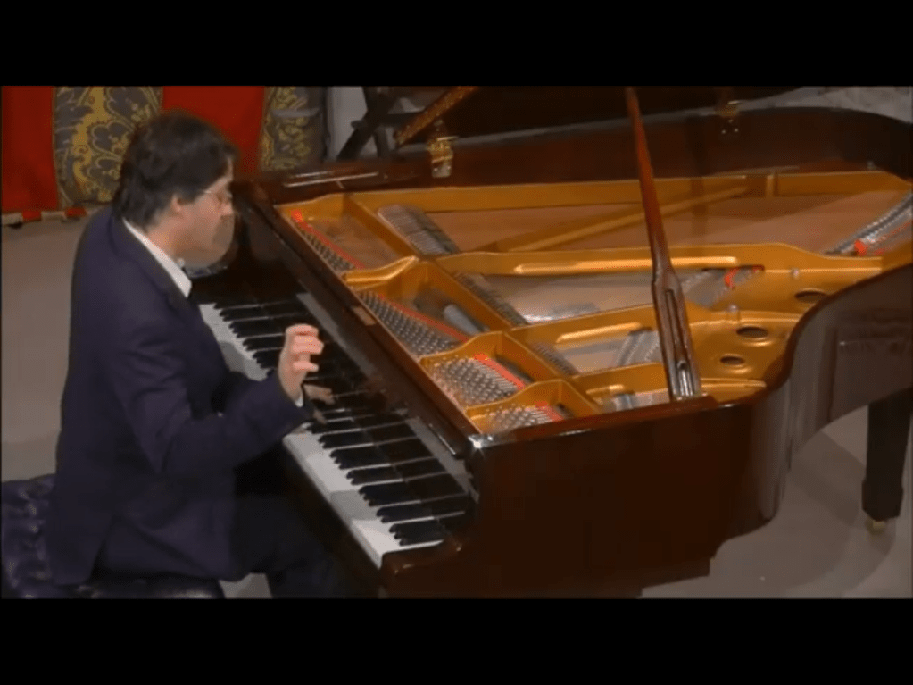 More beautiful playing streamed into my home…..Simone Tavoni playing a fascinating programme -something old something new indeed.The poet certainly spoke at the end of Schumann’s Kinderszenen as he had all through a most characterful series of pieces that in the right hands as today can truly come magically to life.A Clementi Sonata played with all the jewel like brilliance of this much neglected composer. Then the revelation with Debussy’s early Images Oubliées that I can never recall hearing in the concert hall before.The second one taking me by surprise as a carbon copy of his Sarabande from Pour le piano. To end a charmingly preposterous Grande fantasie Soirées musicales S 422 by Liszt. Obviously suggested by his mentor Leslie Howard it was the ideal piece for this intimate setting that could have been the very place that Liszt himself would have turned aristocratic ladies into a mob of screaming fans just waiting to get their hands on their idol. Luckily for Simone today the mob was at home self isolating but it was a performance to charm and thrill even those watching from afar. My supper is probably burnt by now but what does it matter when one’s soul is replenished in these barren times .