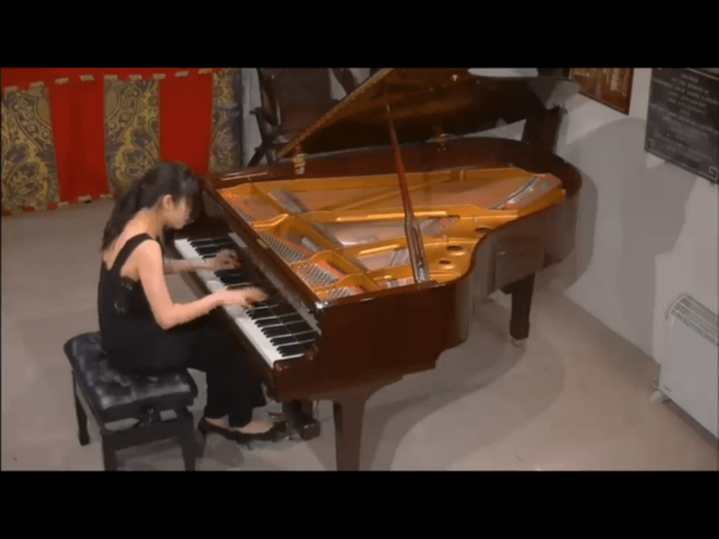 China Gates was composed by the minimalist American composer John Adams in 1977.It is one of his first mature works, which he wrote during a rainy season in northern California and has suggested that the constant quavers of the piece reflect the steady rainfall of the time. The bass notes form the root of the mode, while the upper voices oscillate between different modes,which sound almost like major and minor versions of the same key.Very similar to the repetitive bells of Steve Reich.Adams himself described the structure of the work as an “almost perfect palindrome”.The repeated patterns in the treble sounding like bells with long held bass notes of great delicacy of almost hypnotic effect.A piece that barely lasts five minutes but in Stefanie’s sensitive hands created just the atmosphere out of which grew one of the most beautiful of Debussy’s studies :‘Pour les arpèges composés’.The penultimate of Debussy’s late masterpieces that he described as “a warning to pianists not to take up the musical profession unless they have remarkable hands.”A very similar sound world to the minimalist Adams and here were the same sumptuous sounds with deep bass notes held in long pedals .Such remarkable control and precision that allowed a rhythmic drive until the final wafts of sound that disappear into the distance from where they had come.A sense of colour but also a masterly use of the pedals that allowed great atmosphere but also great clarity.