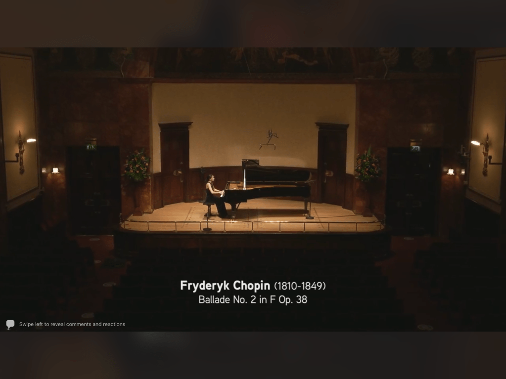 - Ballade No. 2 in F Op. 38 It was the extreme delicacy of the andantino where her absolute legato in the bass gave such subtle colour to the seemingly innocent melodic line and made the eruption of the Presto con fuoco so thrilling.A true Schumannesque Florestan and Eusebius as a tribute to its dedicatee?It was played with such flowing forward movement that led to the technical brilliance of the agitato coda but with such sumptuous sounds that the final pianissimo comment with which it ends came as a true surprise as was the pause,so pregnant with meaning,before the final farewell.
