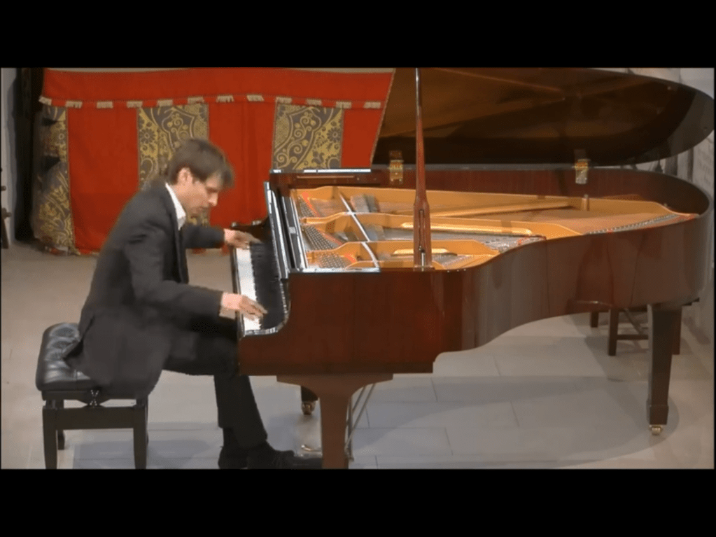 The barbaric Regard de l’Esprit de Joie by Messiaen was a tour de force of dynamic drive and histrionic declarations of faith.The passionate belief of Messiaen together with his love of nature was overwhelming in it’s relentless insistence.The final transcendental scale in Sasha’s hands just proved that love and passion go hand in hand as they had done all through his enthralling performances today.