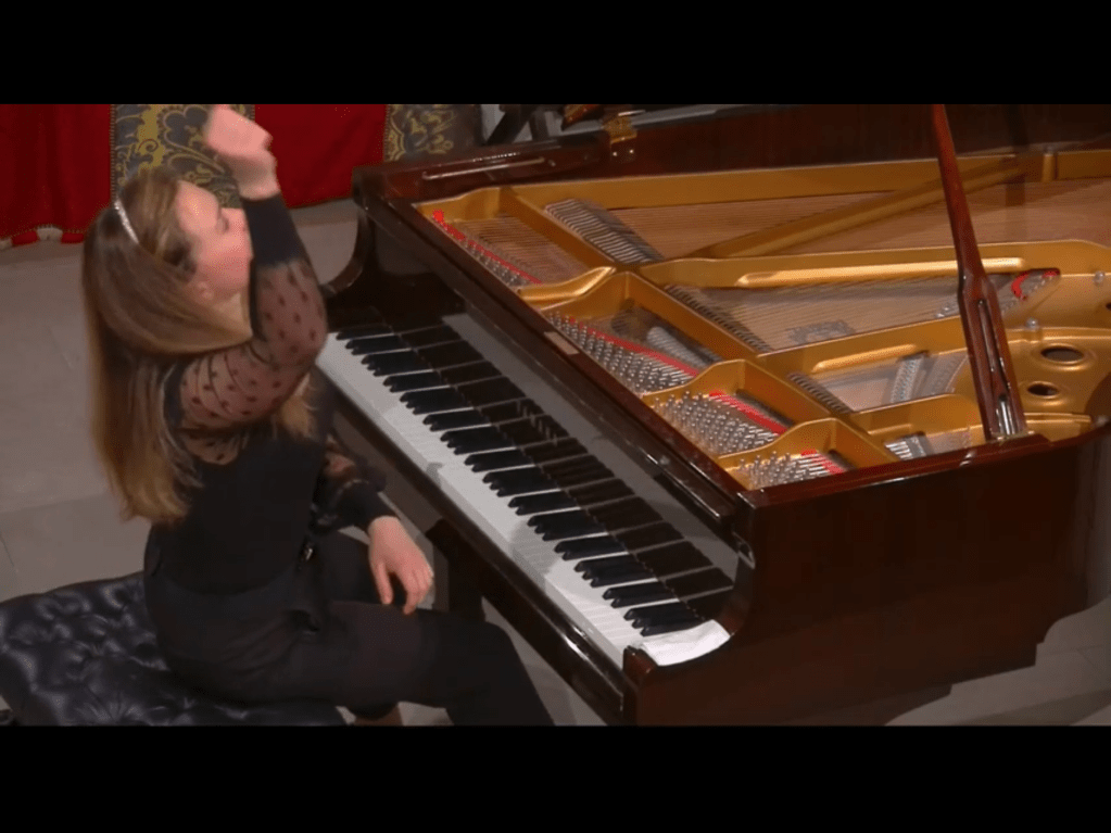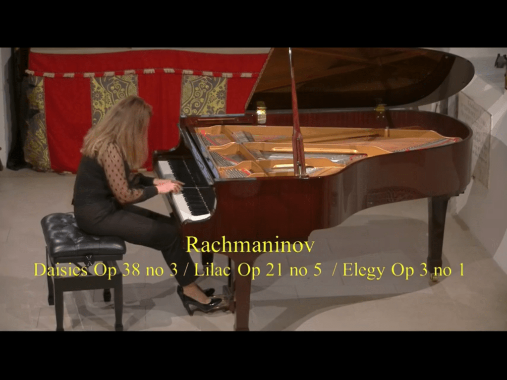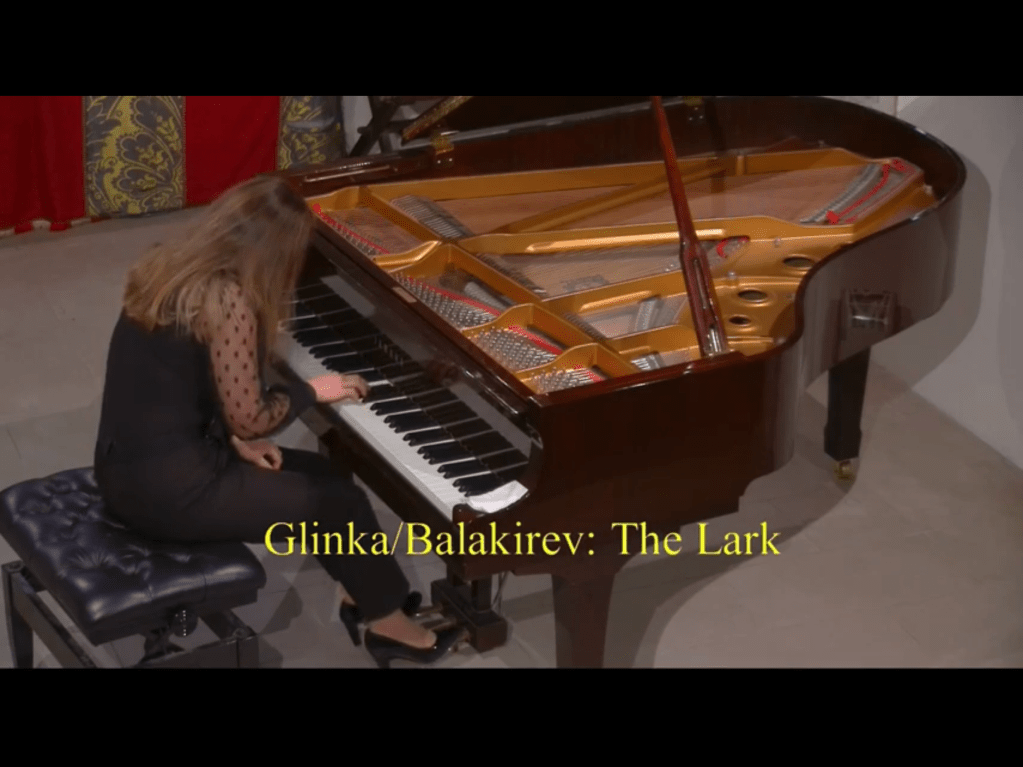 An amazing journey indeed for Dinara Klinton as she took us on a nostalgic journey to her homeland.Some sumptuous sounds and a feeling of aching nostalgia as she looked back to the stories told by Taneyev,Lyadov,Glinka,Medtner,Rachmaninov and Stravinsky.As with all journeys ,especially in this last year,it was not without the unexpected.Streamed live from London to Washington there was a general breakdown of the internet in west London that meant the journey was delayed by a few hours.Thanks to the expert recording facilities at St Mary’s in Perivale,Dr Mather,Roger Nellist and their team had an unexpected change of horses but the carriage arrived safely at its destination.Not aware of these technical problems of streaming Dinara just allowed her heart to stream and stretch out to her audience worldwide with yearning nostalgia.Playing of such ravishing beauty and astonishing technical command that was quite breathtaking as she invited us on to her magic carpet to visit a world much better than the one we had left behind for this all too short journey.