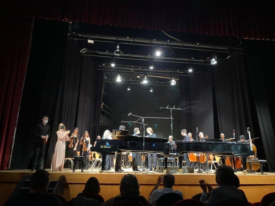 It is quite a rarity to hear these concerti in concert because three pianos on stage takes some organising.So hats off to Roma Tre for being able to find the space at their Teatro Palladium for three pianos and orchestra .As the President of Roma Tre,Roberto Pujia,said in his brief introduction,the combination of music and friendship has allowed him and his former pupil, Valerio Vicari, artistic director for the past 15 years ,to promote and help exceptional young talent to have a platform and to find a family of dedicated professional enthusiasts to help them.