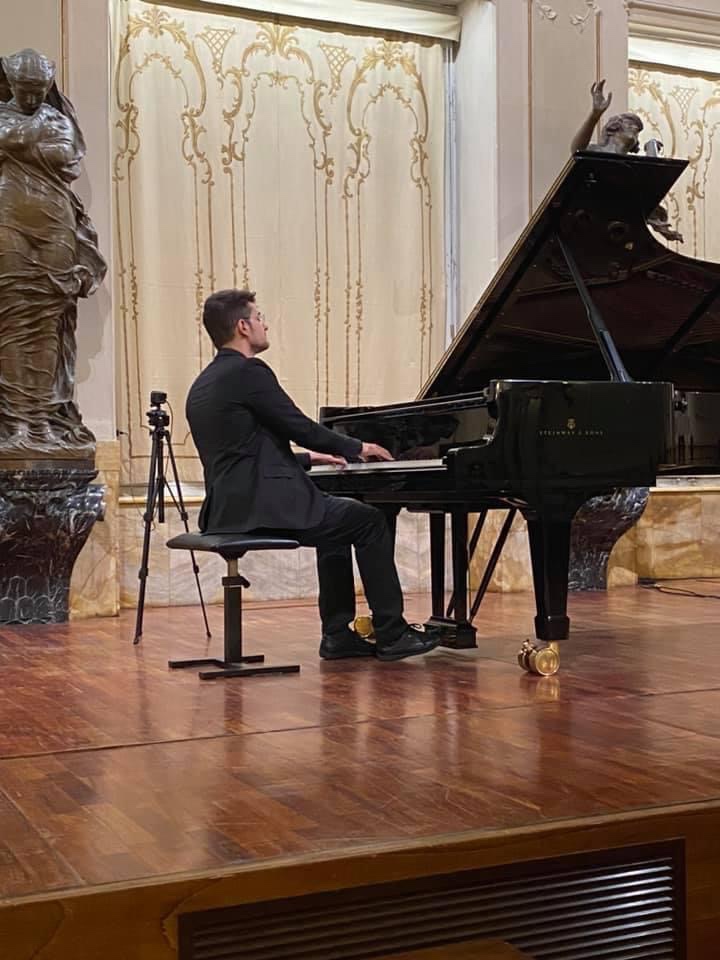 Francesco Maria Navelli (Italia) Fryderyk Chopin.Some fine very solid playing maybe misjudging the very resonant acoustic of this beautiful hall in the Chigiana Academy.He gave however an architectural shape that kept the rhythmic energy from the first to the last note.Very assured playing missing the finer filigree of the cascades of shimmering sounds that accompany the great choral that appears so magically out of the exuberance of the outward octave declarations .